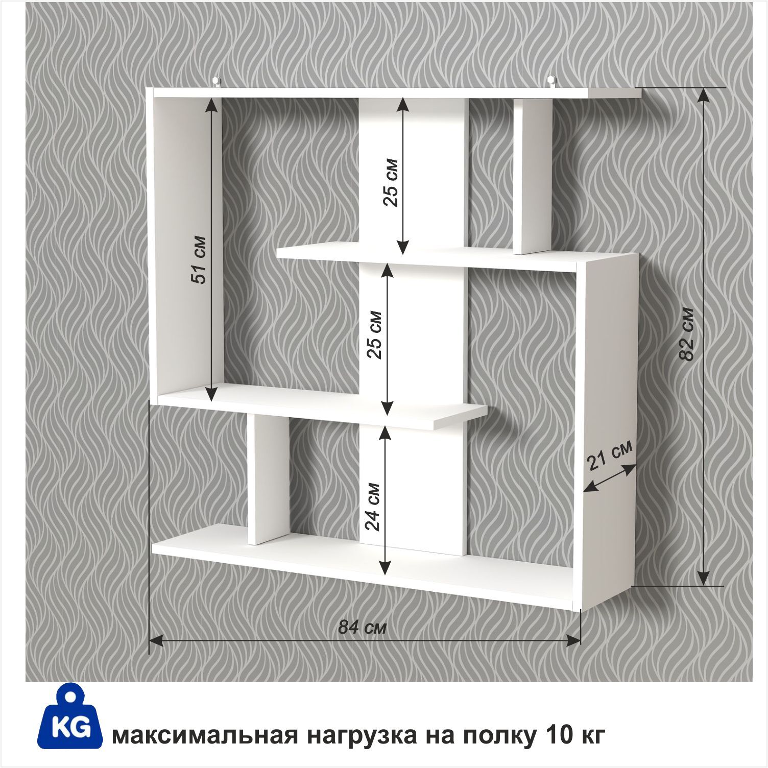 Полка ГайваМебель Настенная Прямая Д-35, 84х21х82 см, 1 шт.