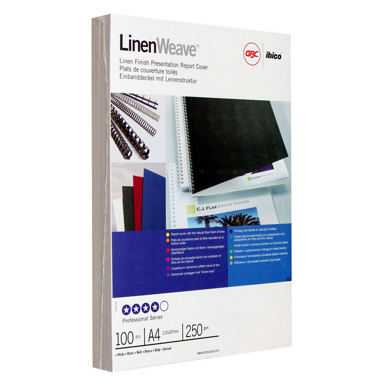Обложки для переплета картонные GBC белые кожа, А4, 250г/м2, 100шт/уп. 1 шт.