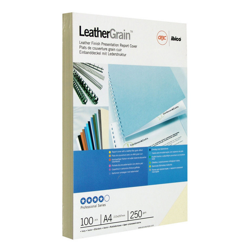 Обложки для переплета картонные GBC А4 250 г/кв.м белые текстура кожа (100 штук в упаковке)