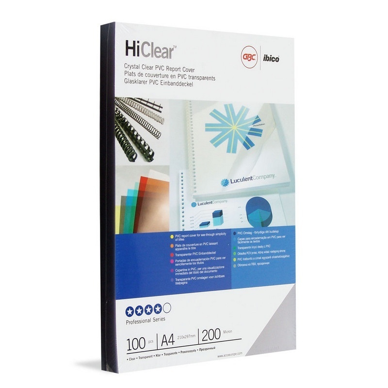 Обложки для переплета GBC пластиковые, прозрачные, А4, S 200 мкм, 100 шт