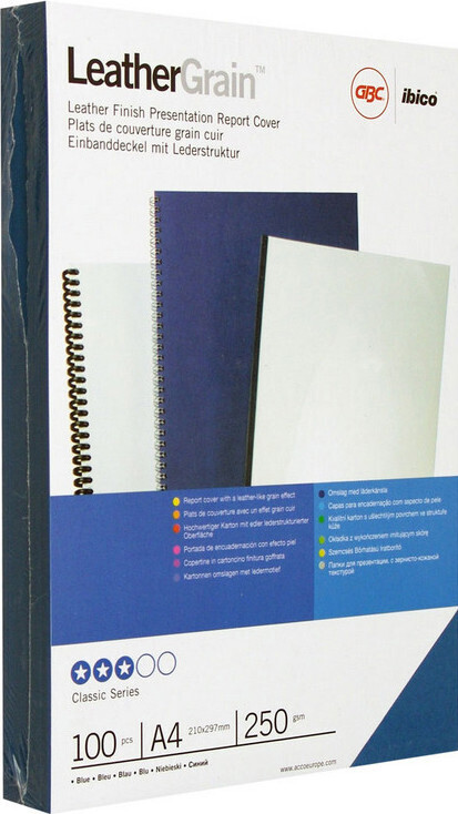 Обложки для переплета картонные GBC синий кожа, А4, 250г, 100 штук в упаковке