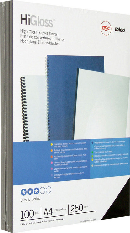 Обложки для переплета картонные GBC черные глянец, А4, 250г, 100 штук в упаковке