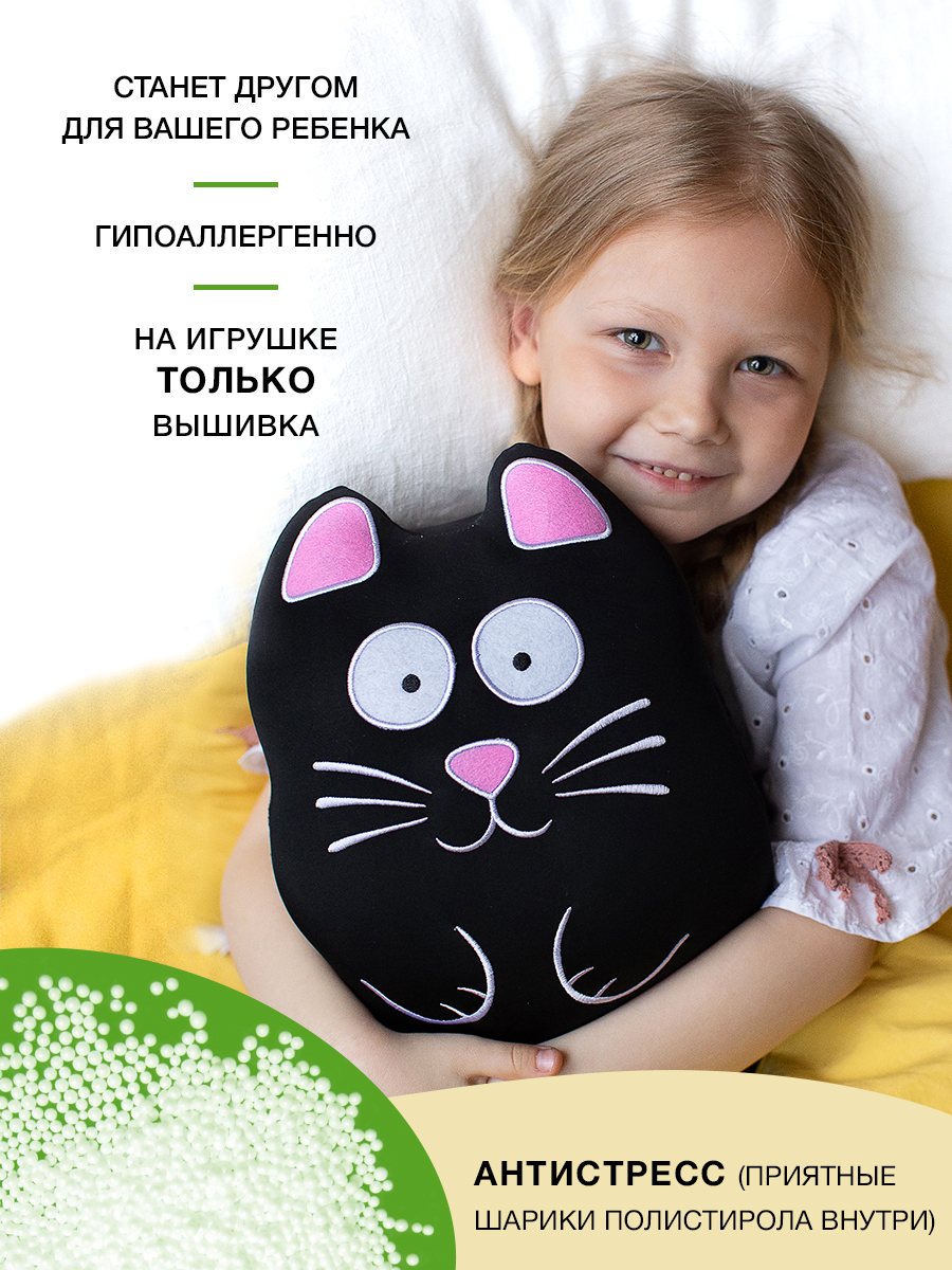 Мягкая игрушка подушка антистресс Gekoko "Кот Уголек"