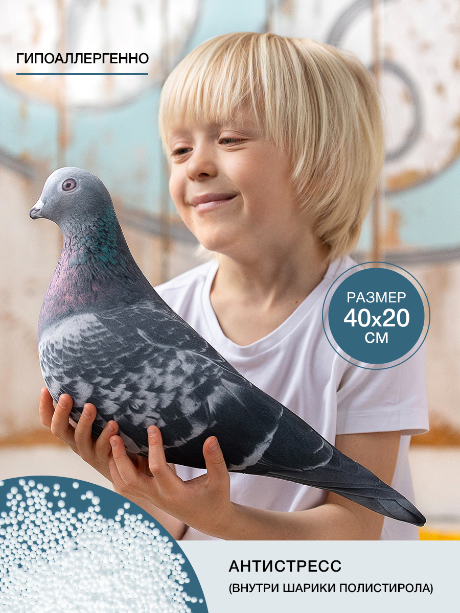 Мягкая игрушка - подушка антистресс Gekoko "Сизый Голубь"