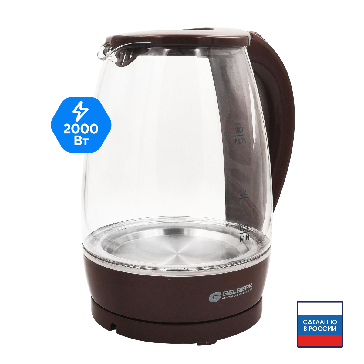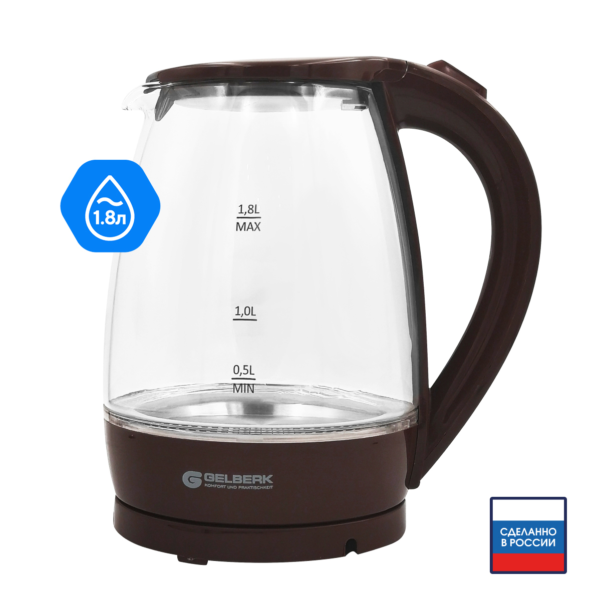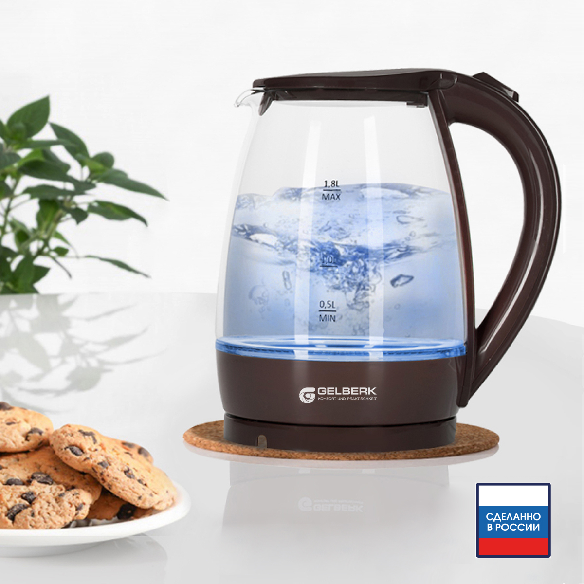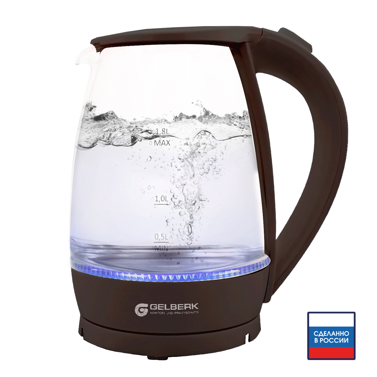 Чайник электрический стеклянный / GL-470 от Gelberk / c голубой подсветкой / 1,8 л / цвет: шоколад