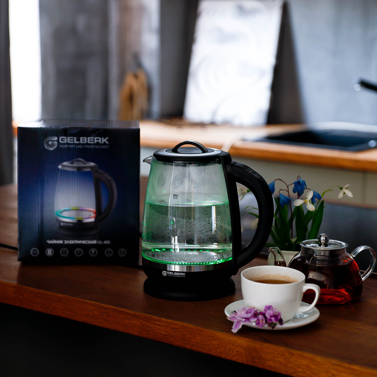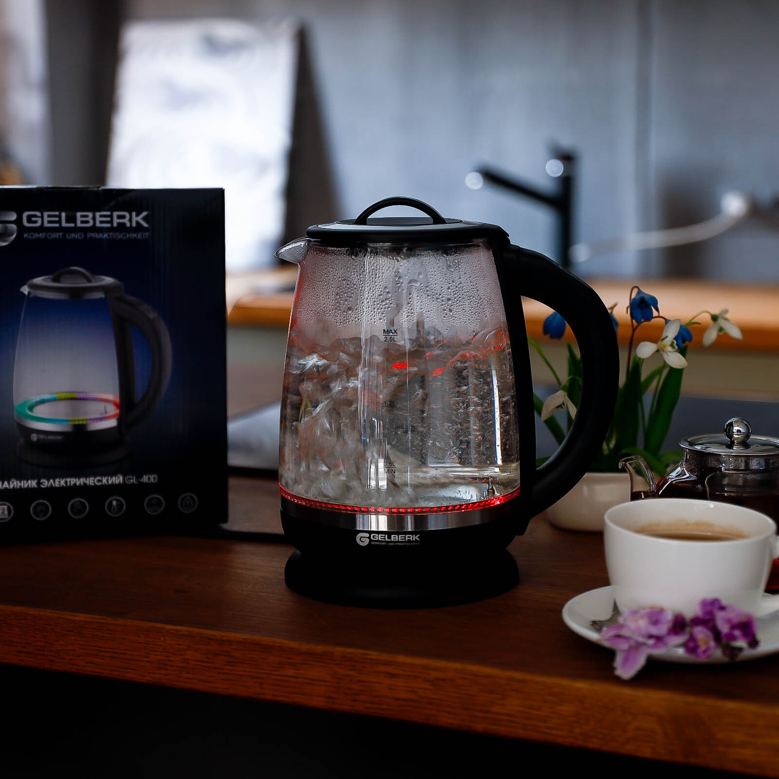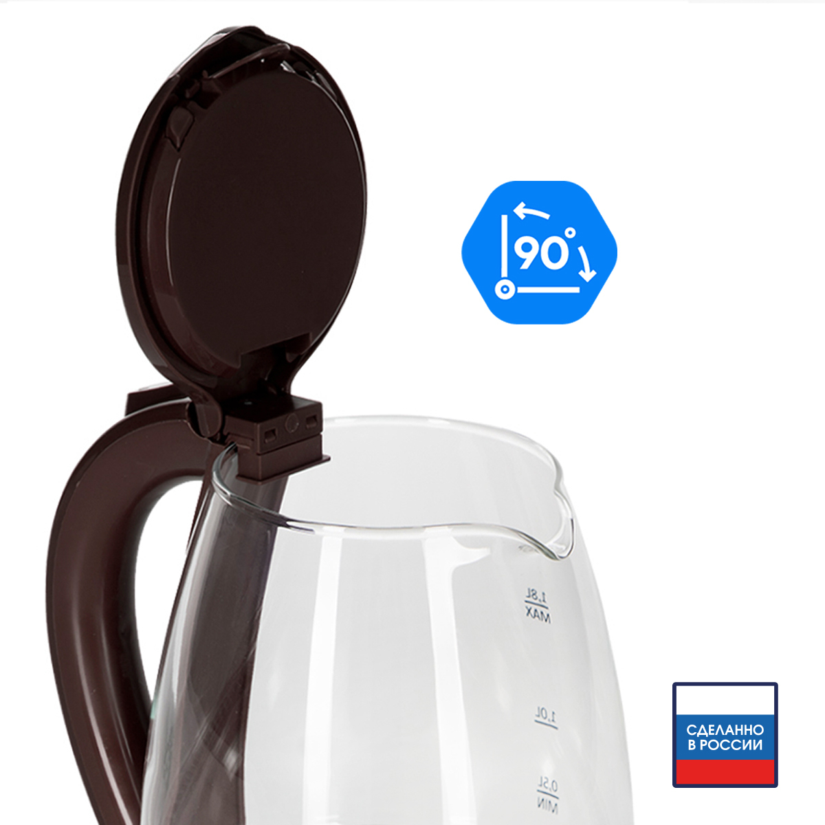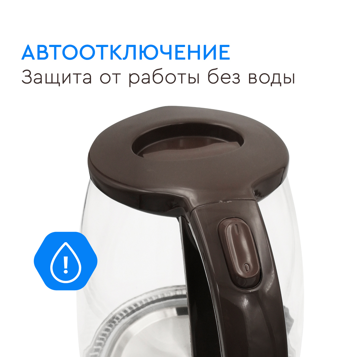 Чайник электрический стеклянный / GL-470 от Gelberk / c голубой подсветкой / 1,8 л / цвет: шоколад