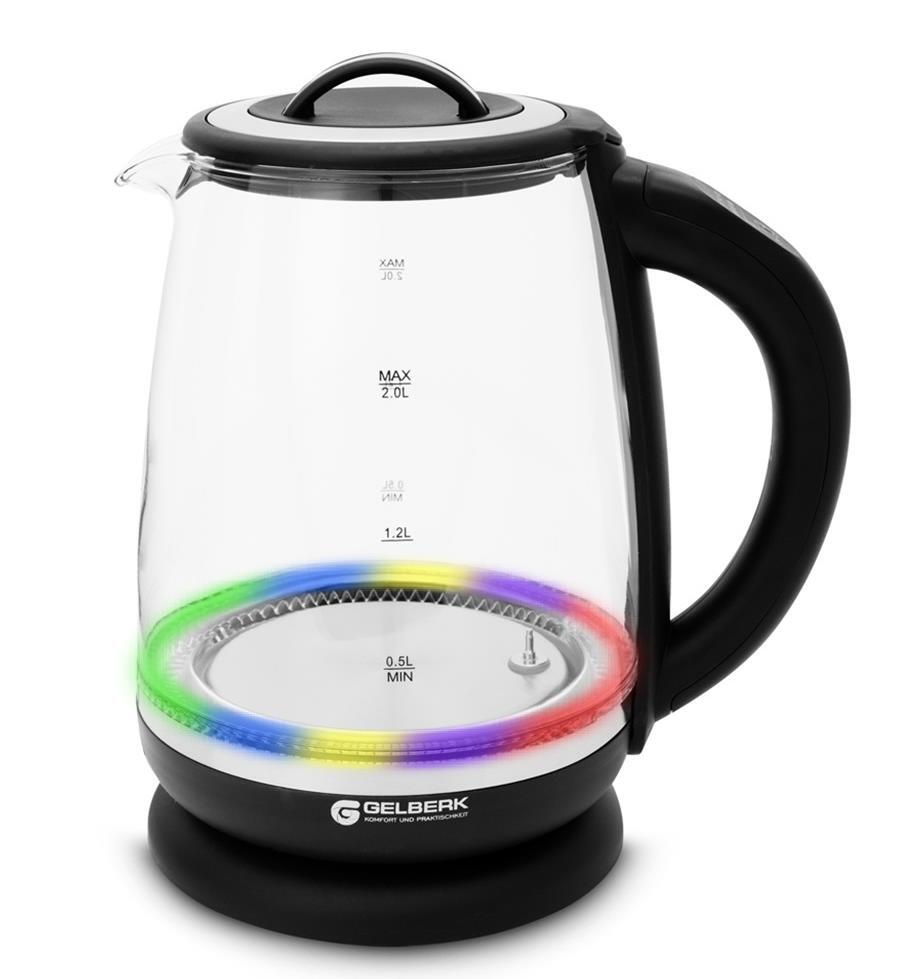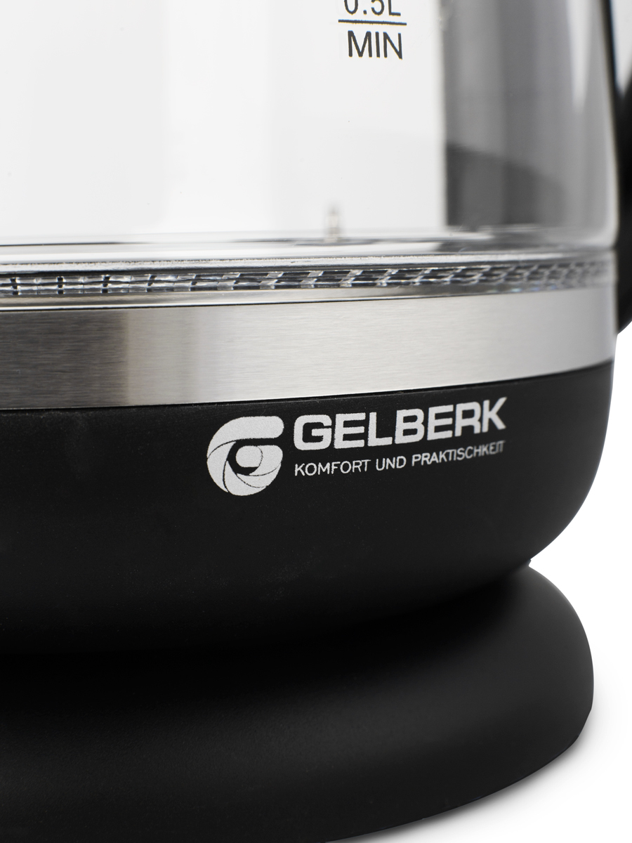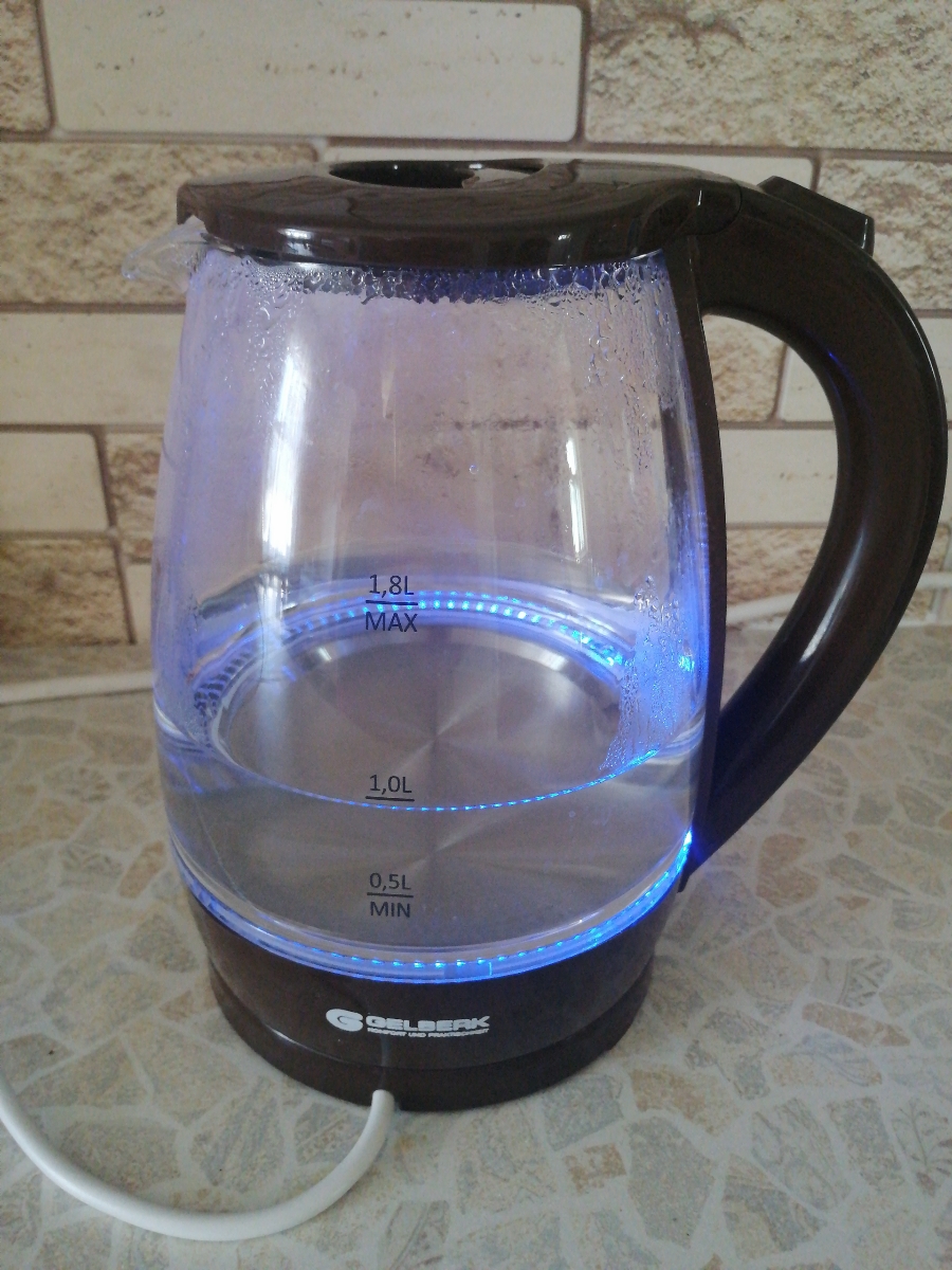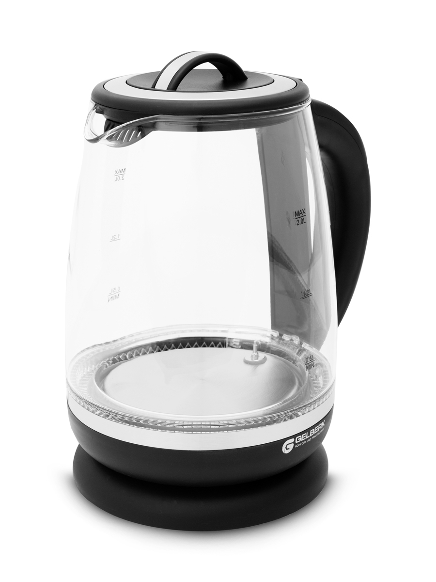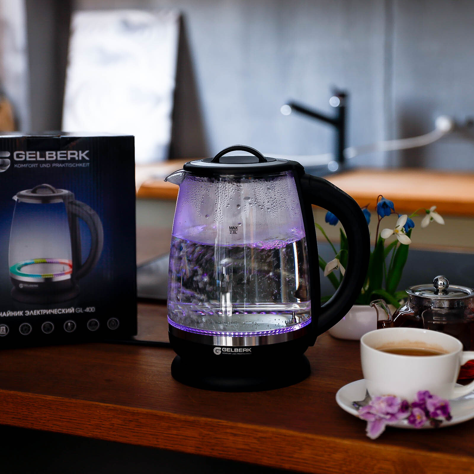 Чайник электрический стеклянный / GL-470 от Gelberk / c голубой подсветкой / 1,8 л / цвет: шоколад