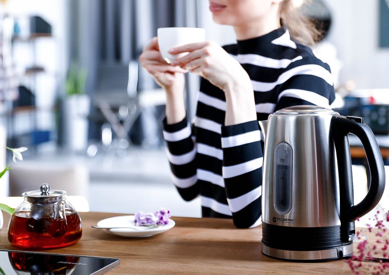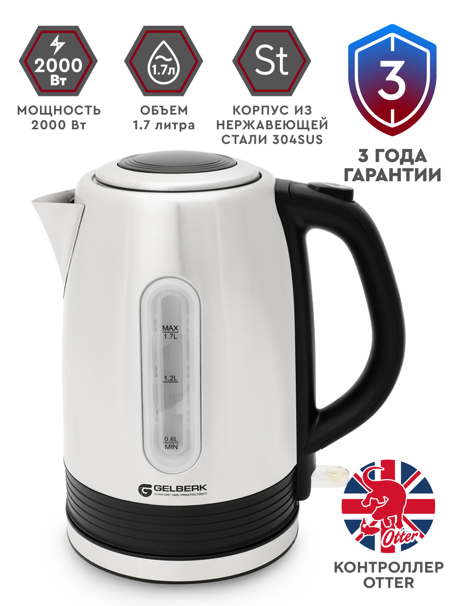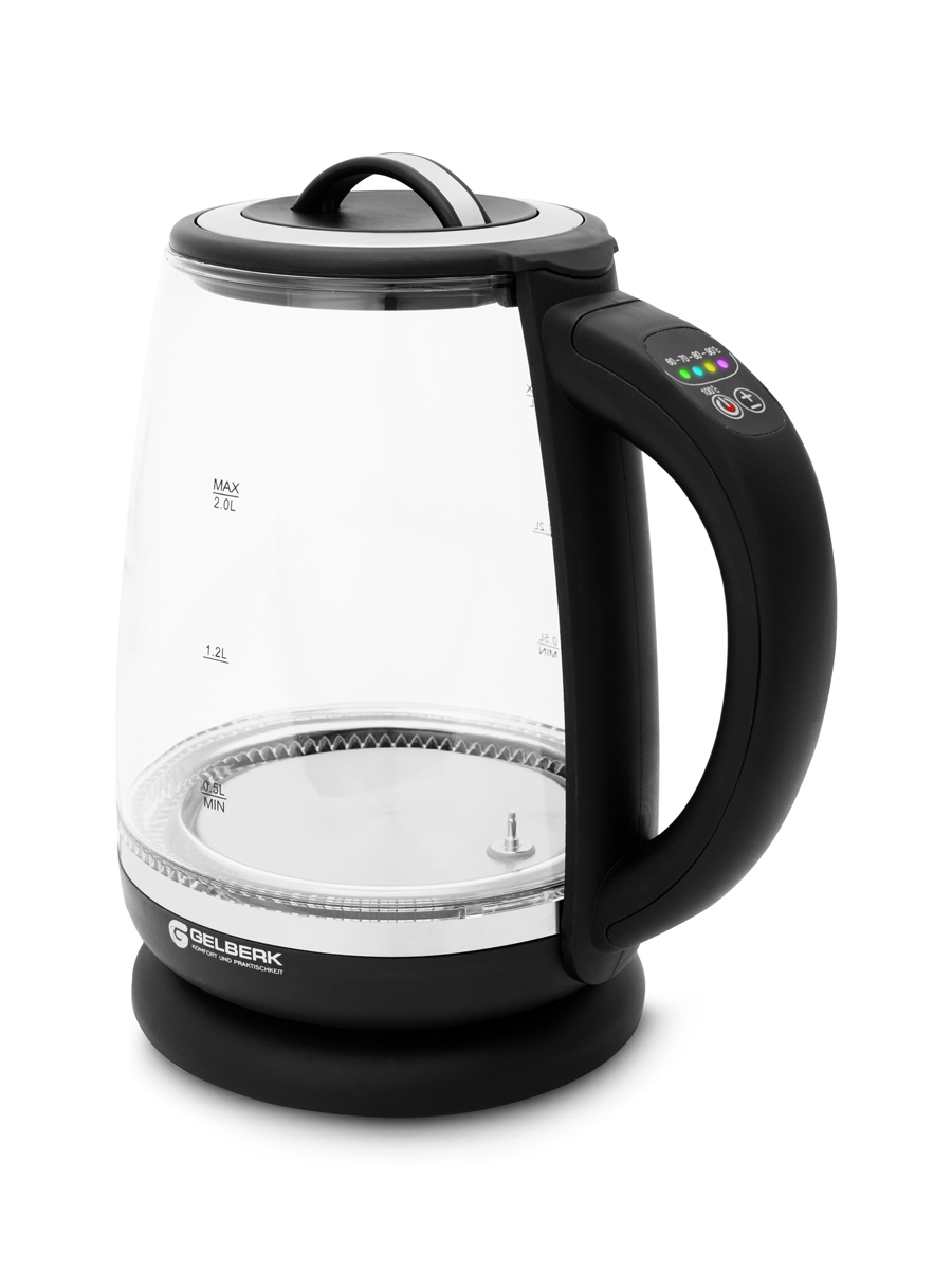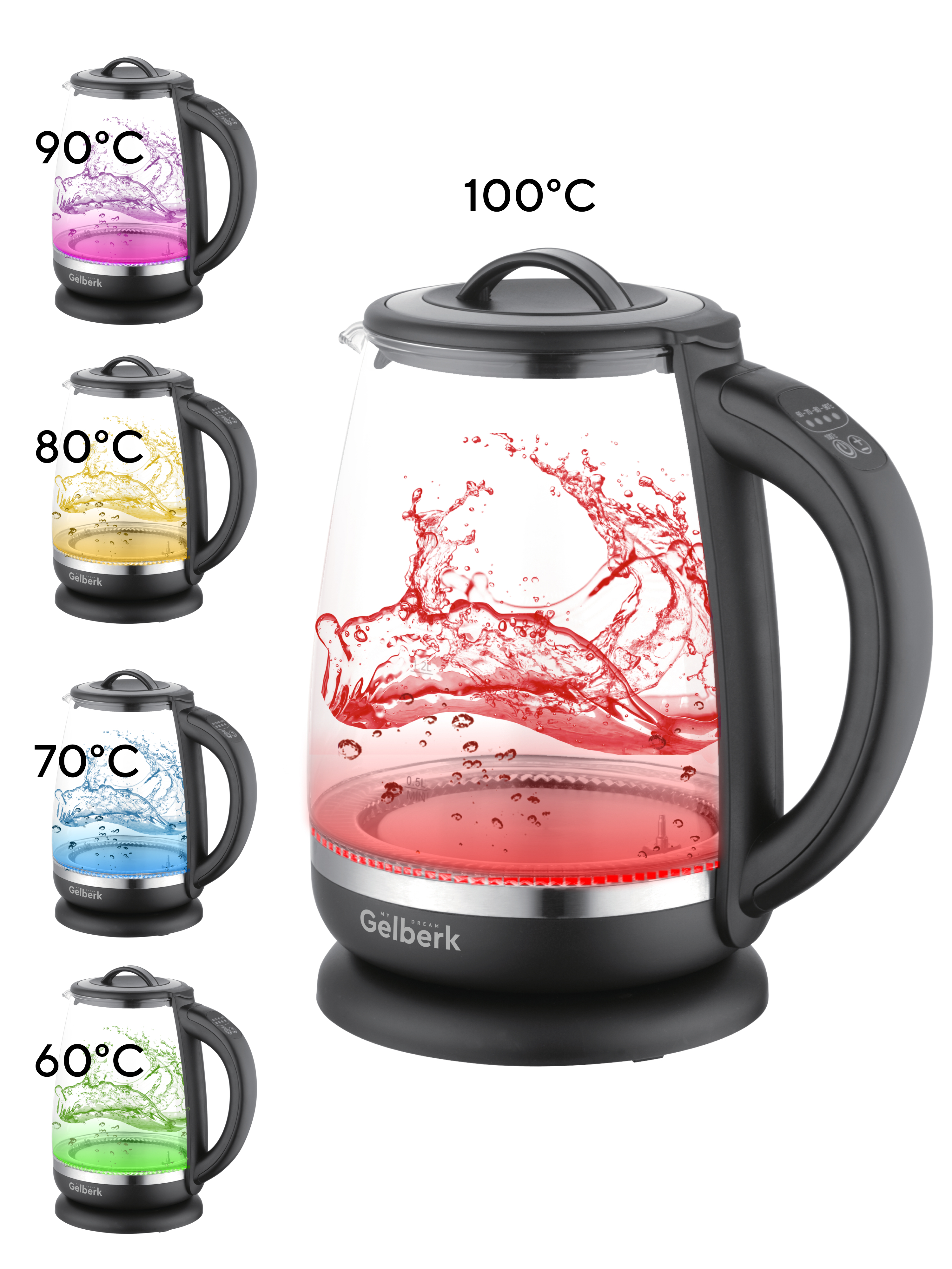 Чайник электрический стеклянный / GL-470 от Gelberk / c голубой подсветкой / 1,8 л / цвет: шоколад