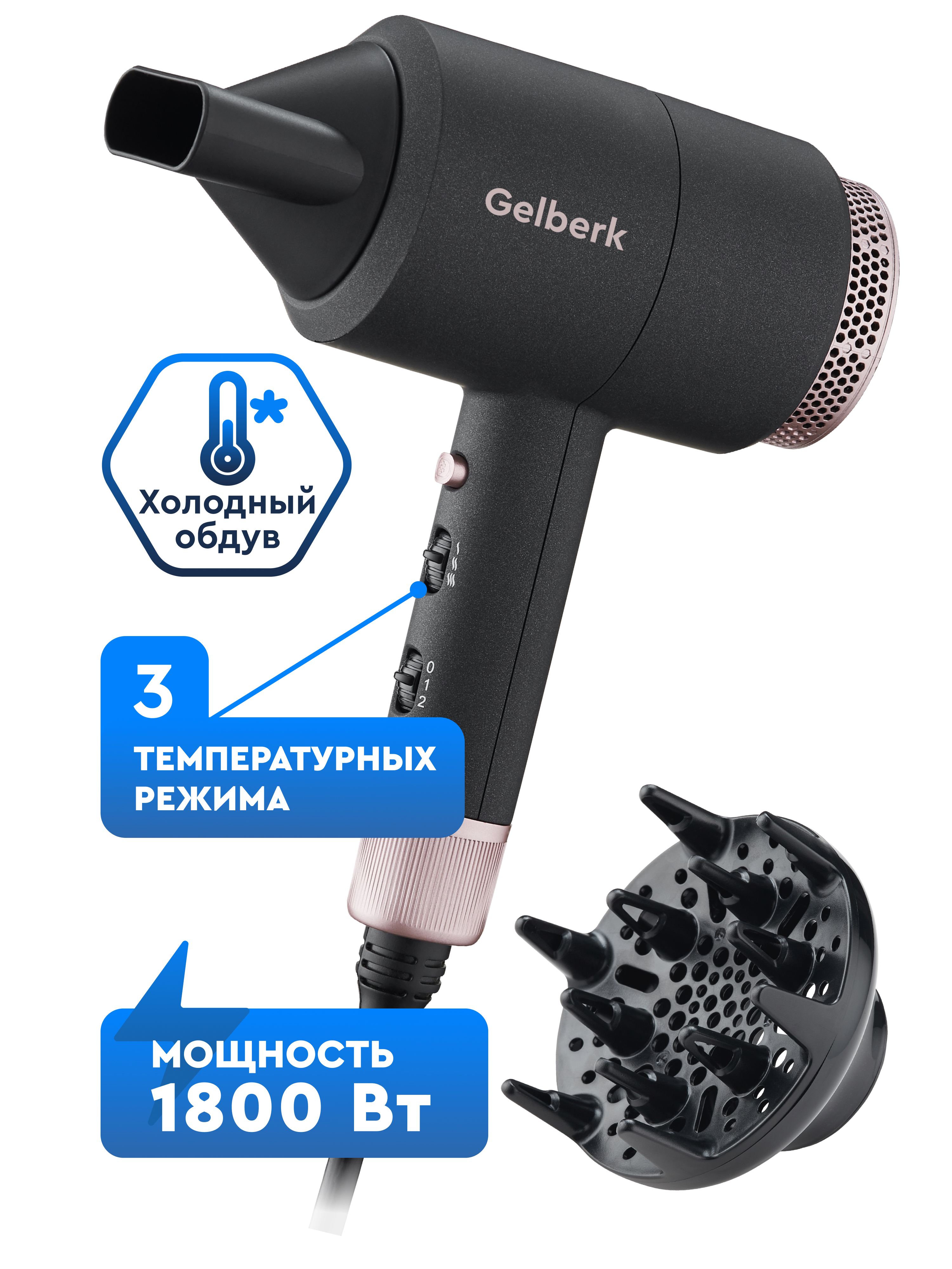 Выпрямитель для волос Gelberk Фен-щипцы GL-661 30 Вт, гофре ,черный