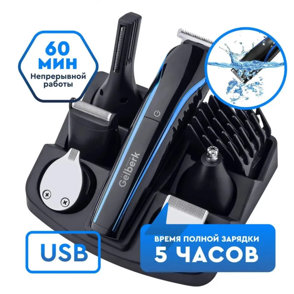 Машинка для стрижки и бритья / 9 в 1 / Gelberk GL-HCS03 / 9 насадок / машинка для бритья / машинка для стрижки 0-8 мм