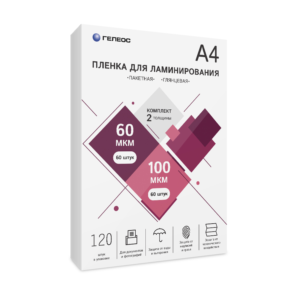 Набор пленок для ламинирования ГЕЛЕОС, А4, 60,100 мкм по 60 шт.