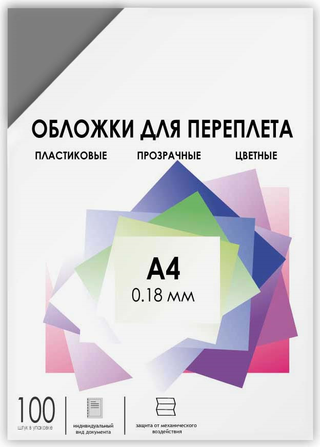 Гелеос Обложка для брошюрования А4 0,18 мм прозрачные дымчатые 100 шт