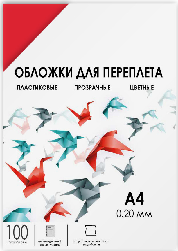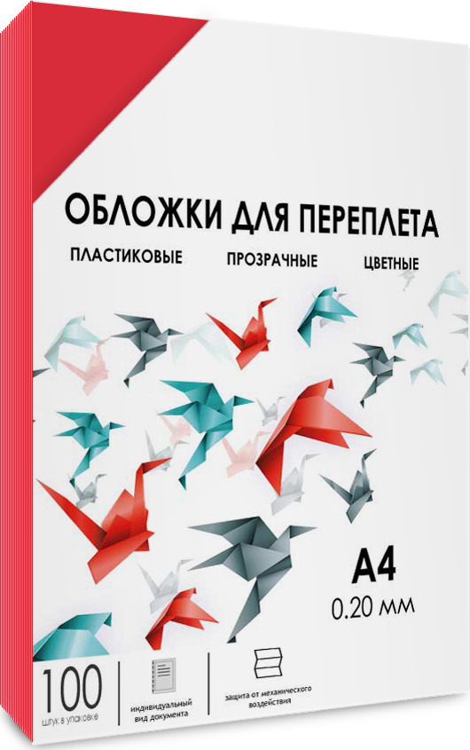 Обложки для переплета прозрачные пластиковые ГЕЛЕОС, А4, 0.2 мм, красные , 100 шт.