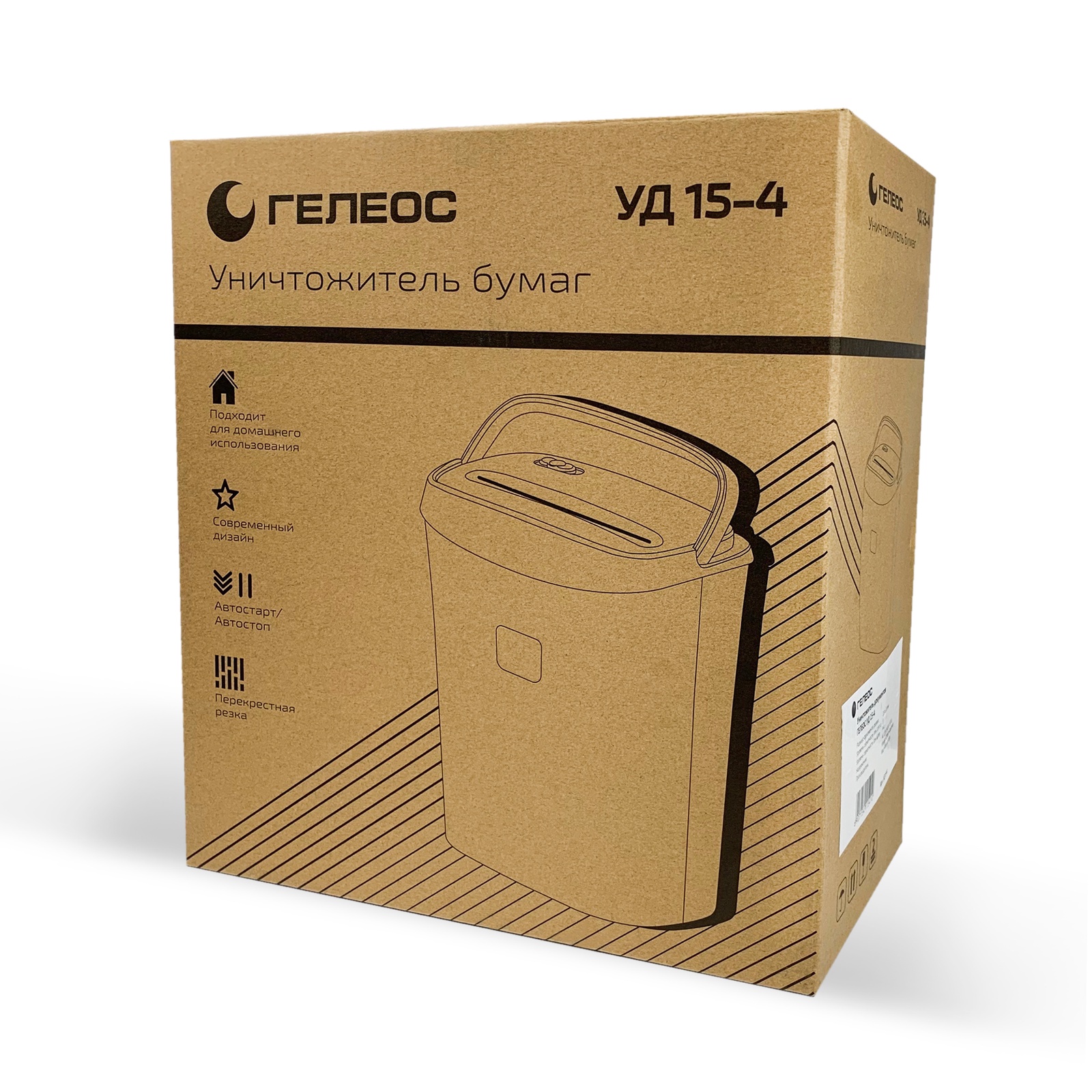 Шредер ГЕЛЕОС УД 15-4, DIN P-4, 3,9х35мм, 7-9 лист (70г/м2), пл. карты, скобы, 15 литров