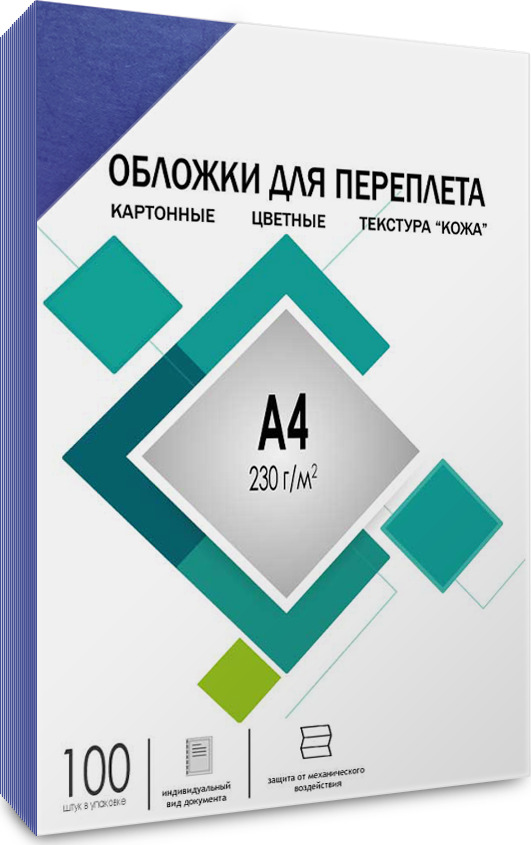 Обложки для переплета Гелеос, А4, тиснение под "кожу", синие , 100 шт.