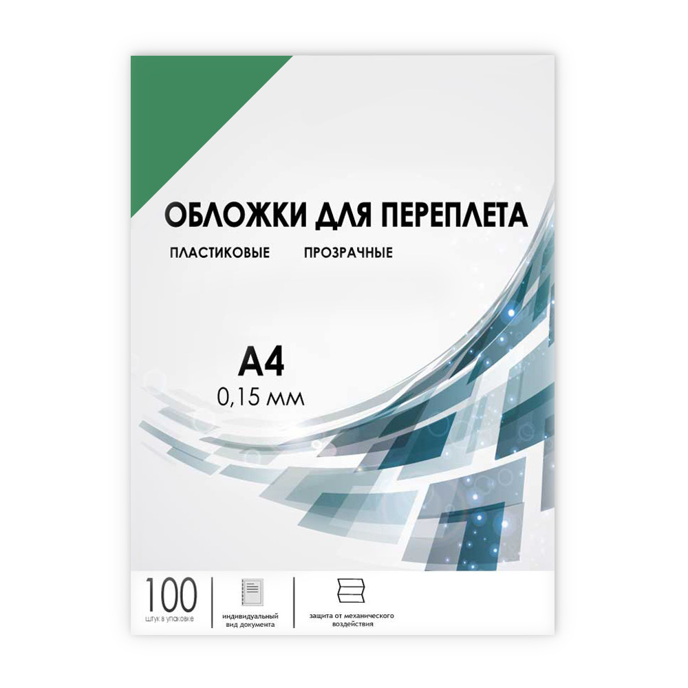 Обложки для переплета прозрачные пластиковые ГЕЛЕОС, А4, 0.15 мм, зеленые , 100 шт.