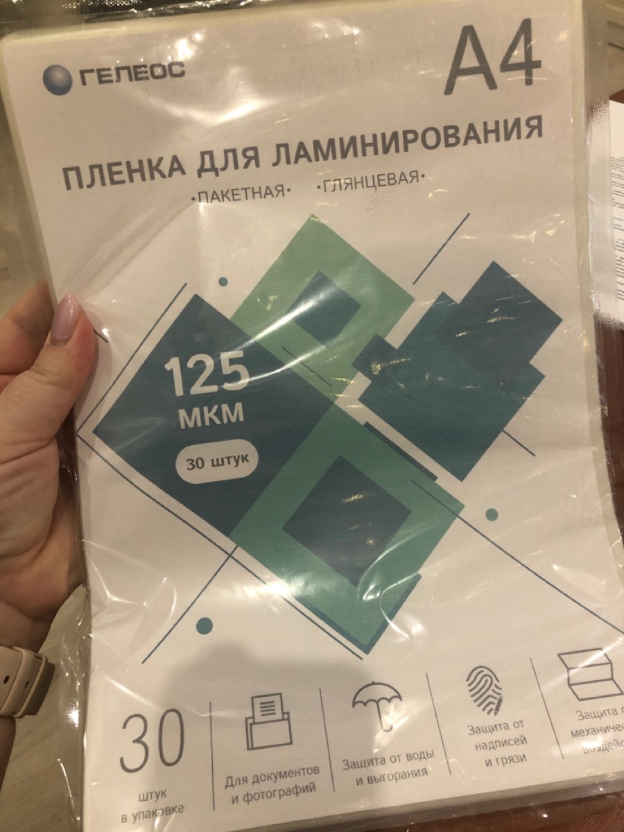 Пленка для ламинирования ГЕЛЕОС, А4, 125 мкм 30 шт.