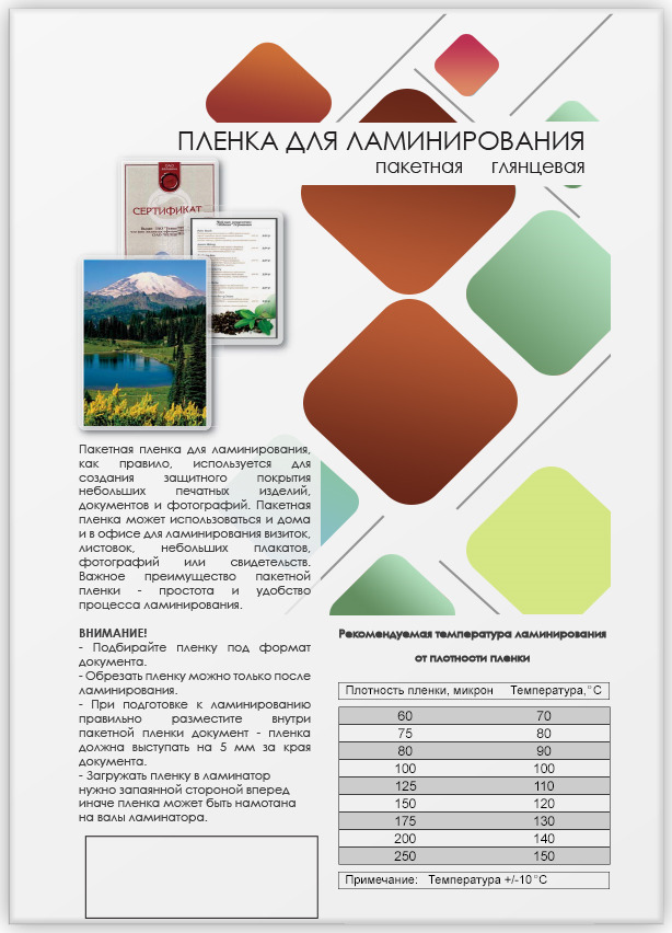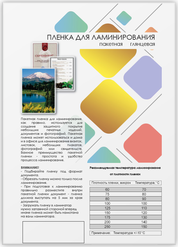 Пленка для ламинирования ГЕЛЕОС, А4, (216х303 мм), (150 мик), 100 шт