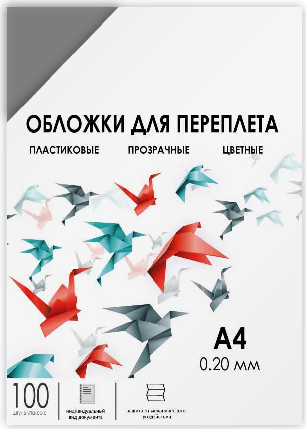 Гелеос Обложка для брошюрования А4 0,2 мм прозрачные дымчатые 100 шт