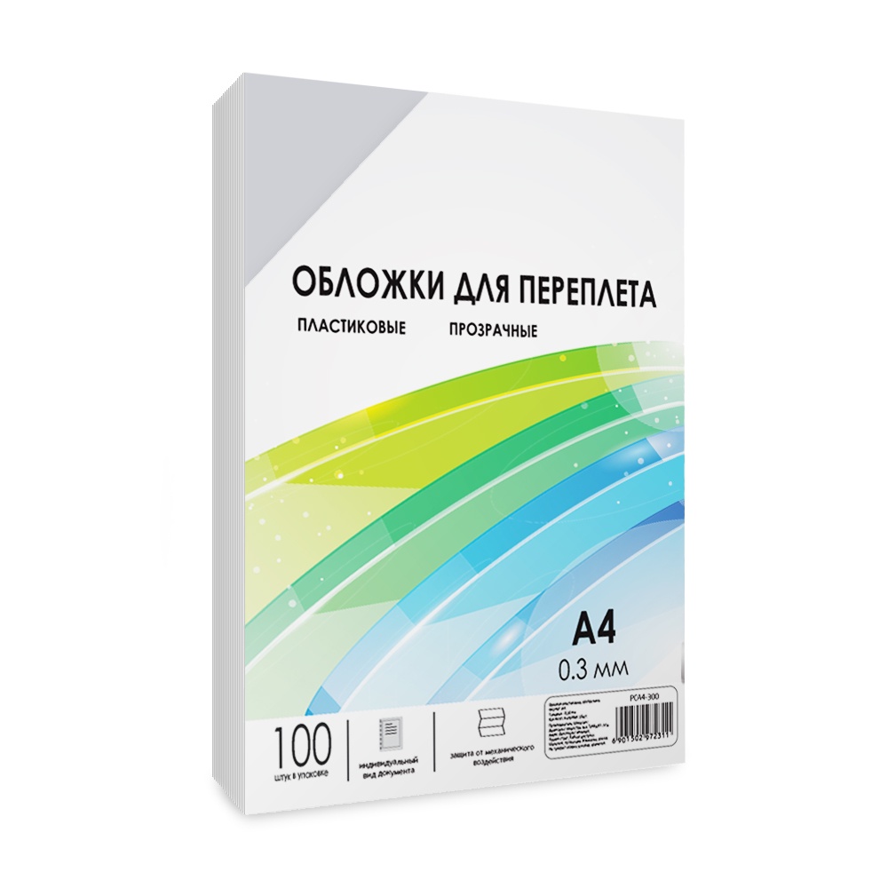 Обложки для переплета прозрачные пластиковые ГЕЛЕОС, А4, 0.3 мм, 100 шт.
