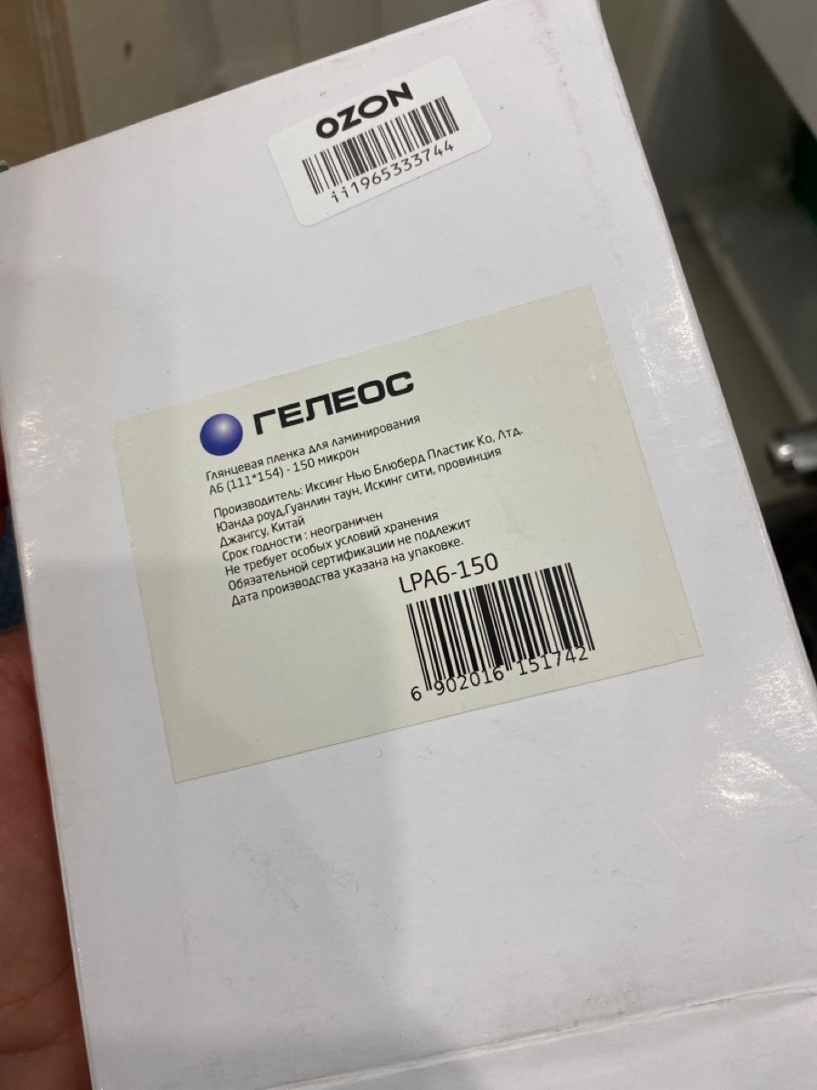 Пленка для ламинирования ГЕЛЕОС, А6, 111х154 (75 мик) 100 шт.,