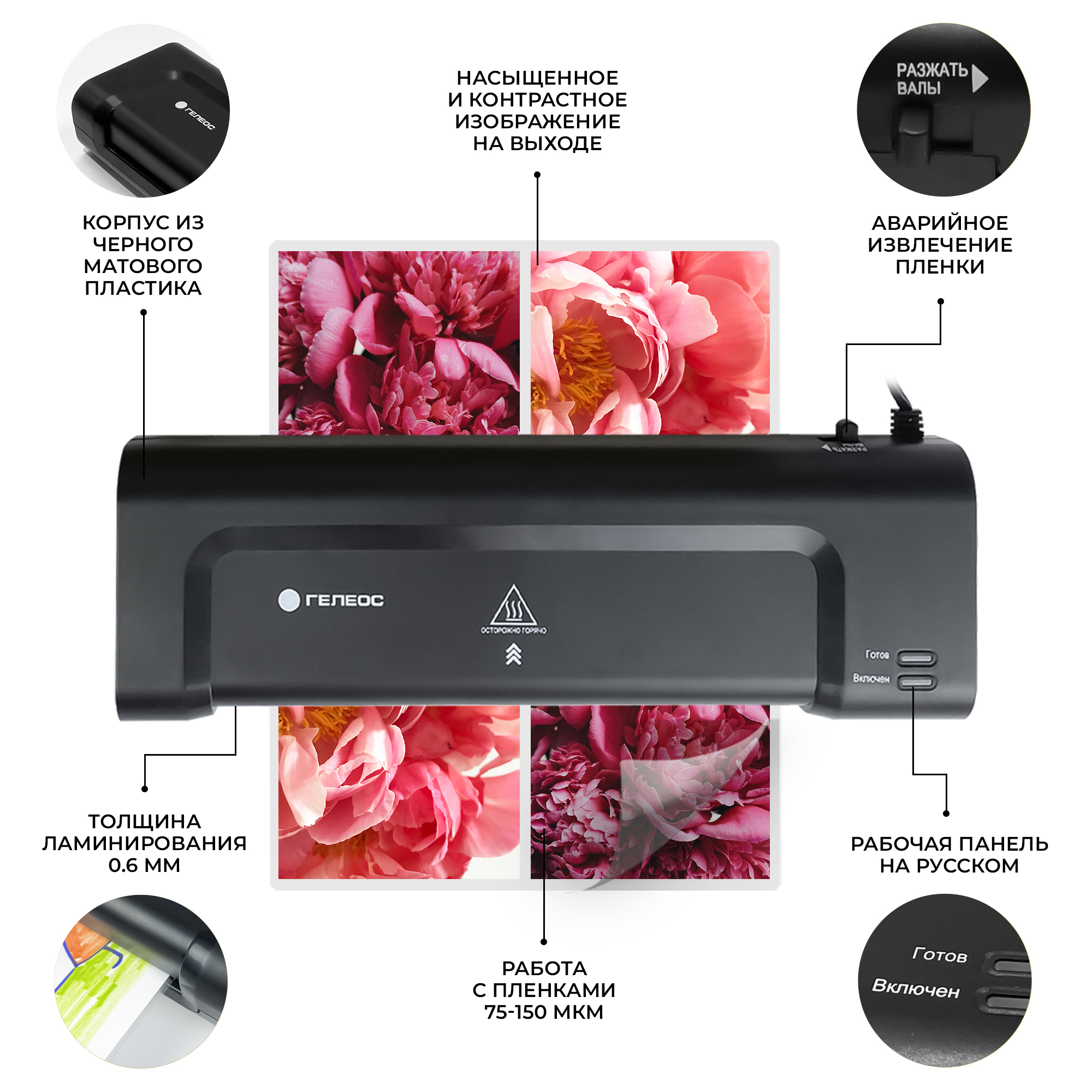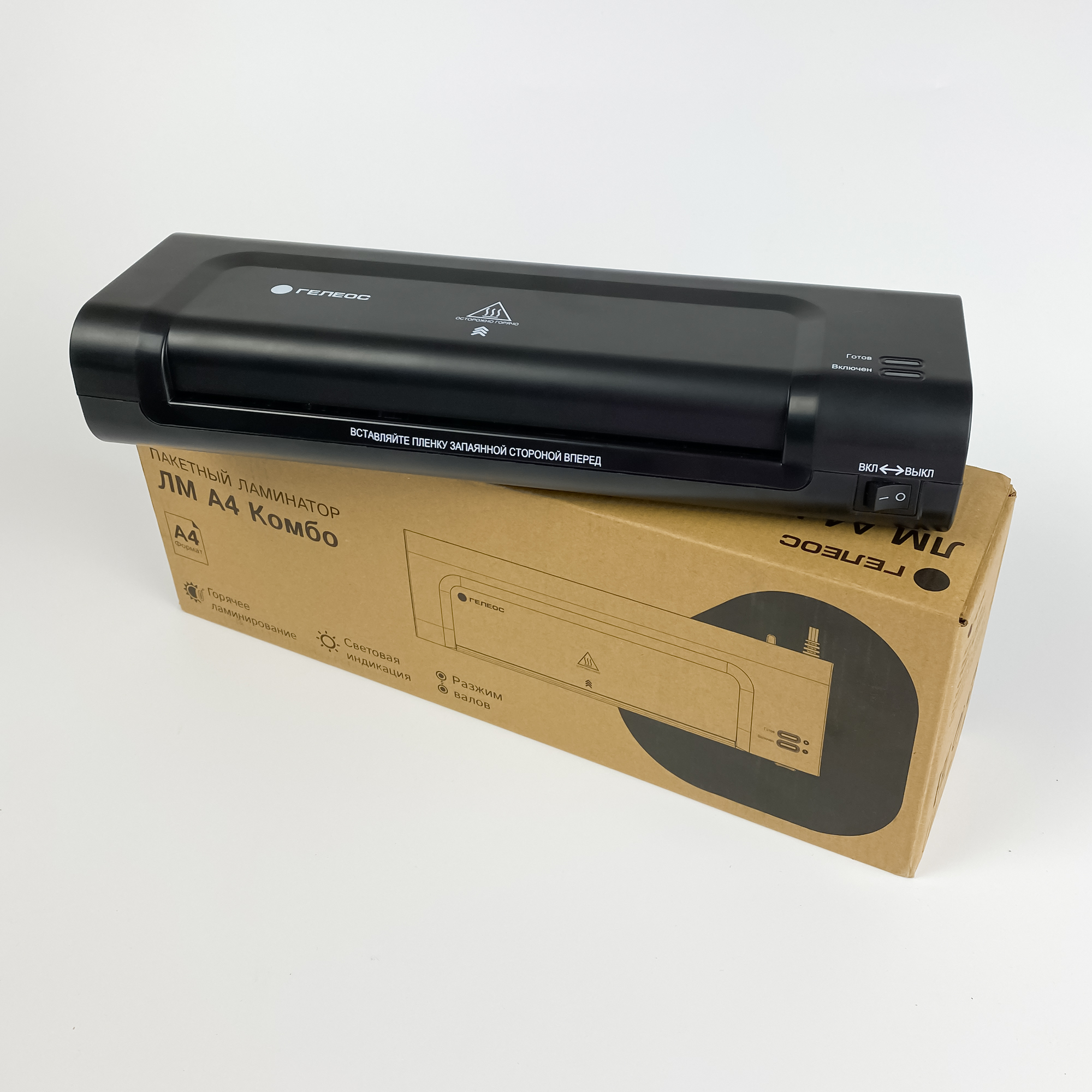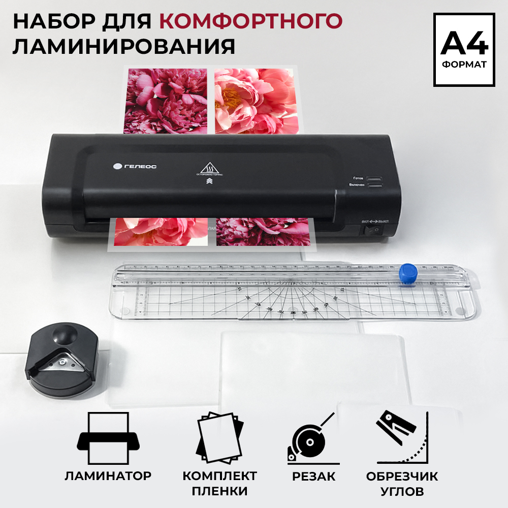 Ламинатор ГЕЛЕОС ЛМ A4 Комбо 75-150 мкм, резак, обрезчик углов, набор пленок.