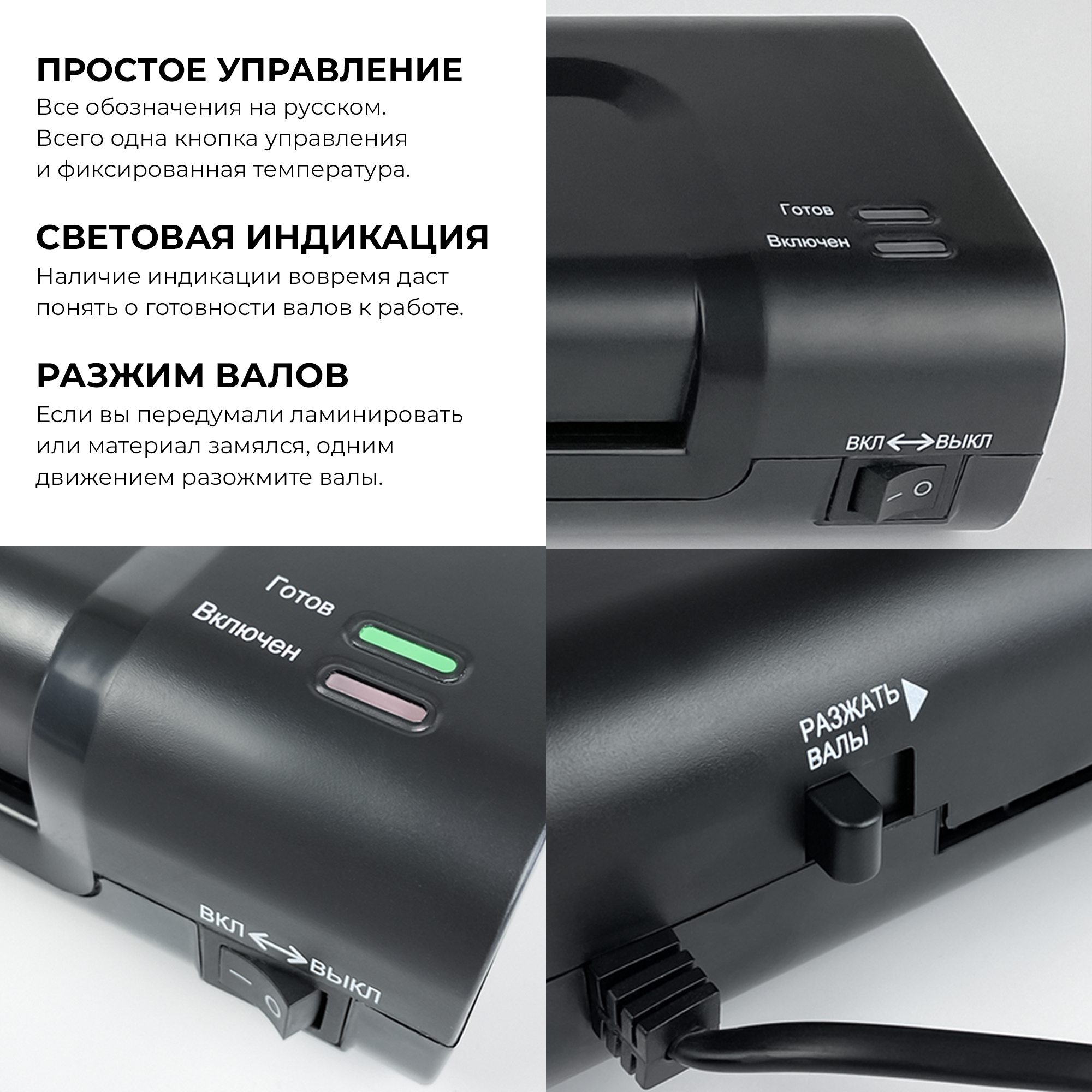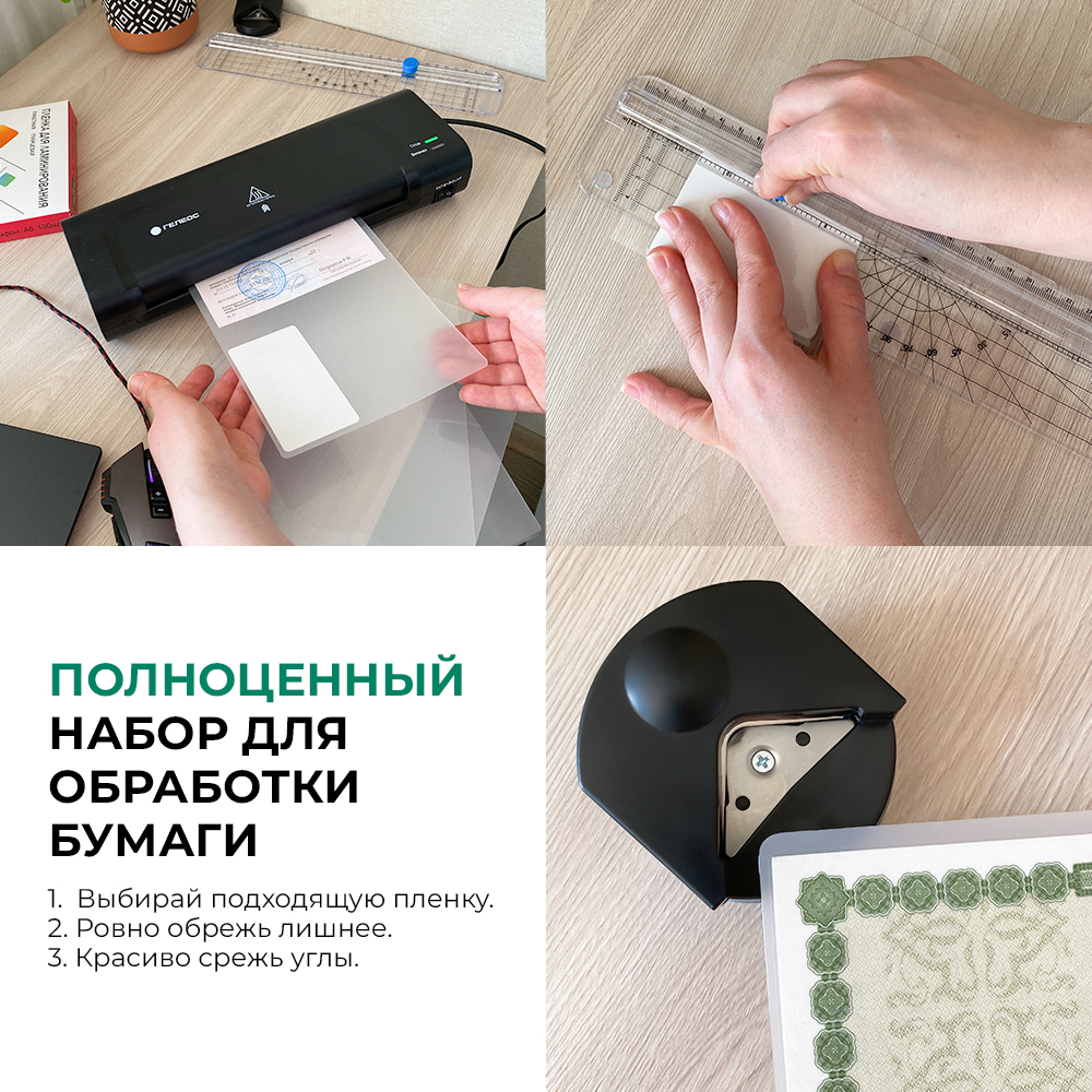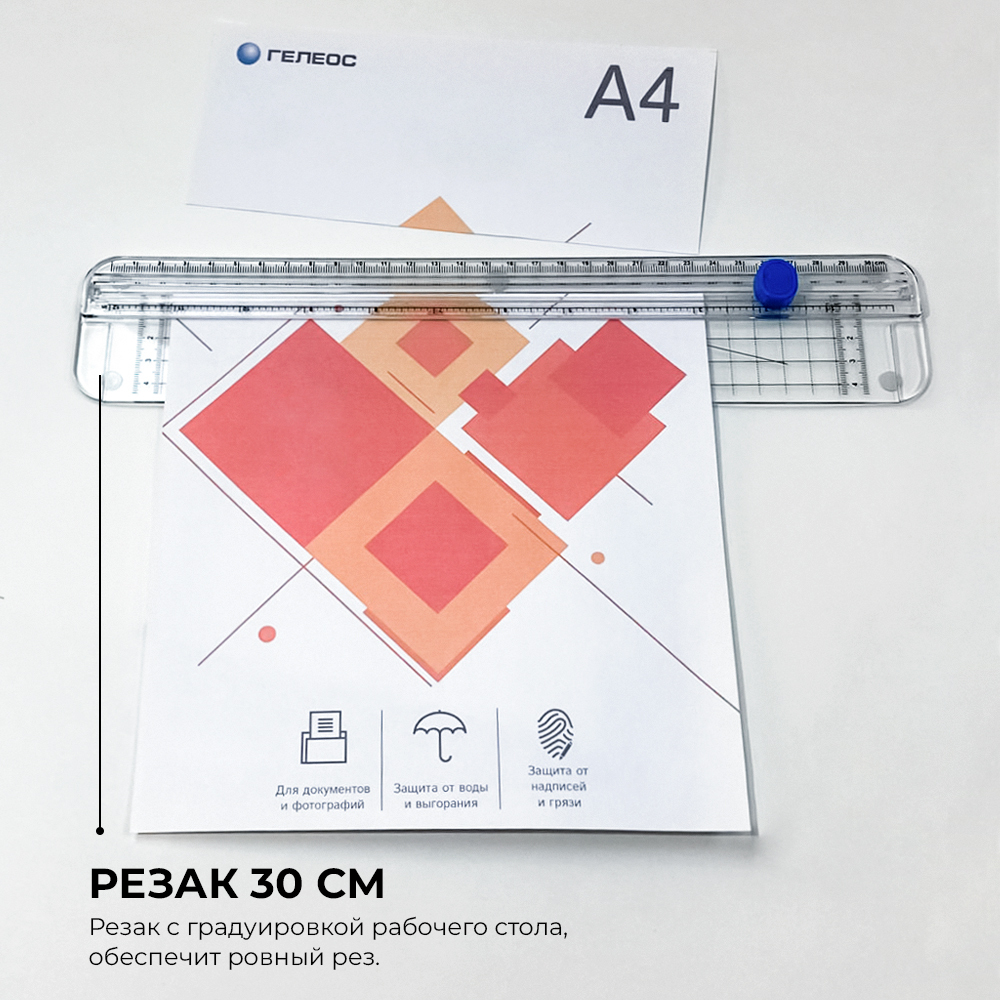 Ламинатор ГЕЛЕОС ЛМ A4 Комбо 75-150 мкм, резак, обрезчик углов, набор пленок.