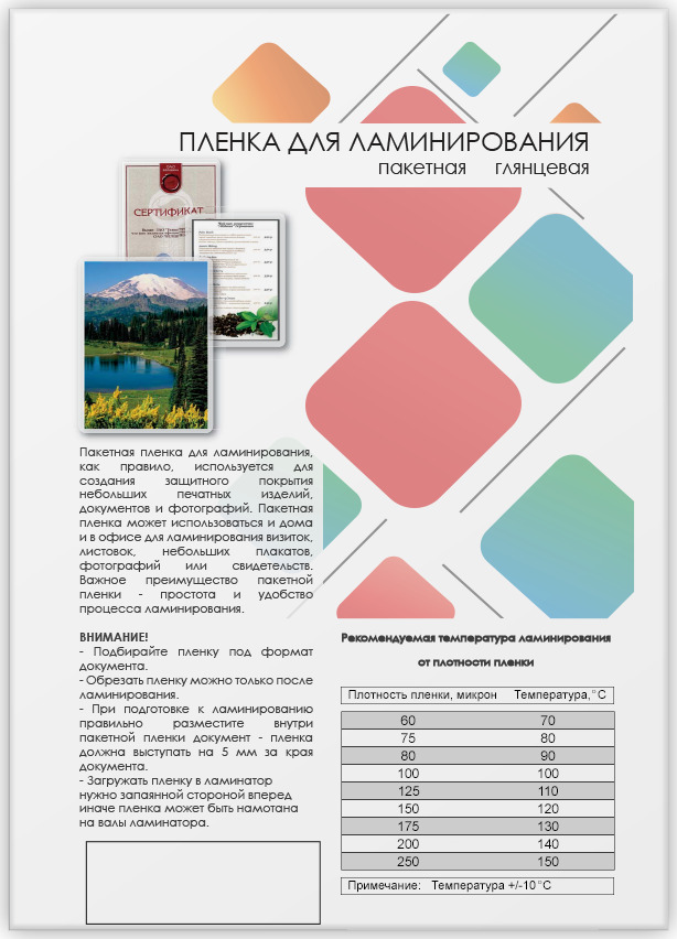 Пленка для ламинирования матовая, Гелеос LPA3-200M