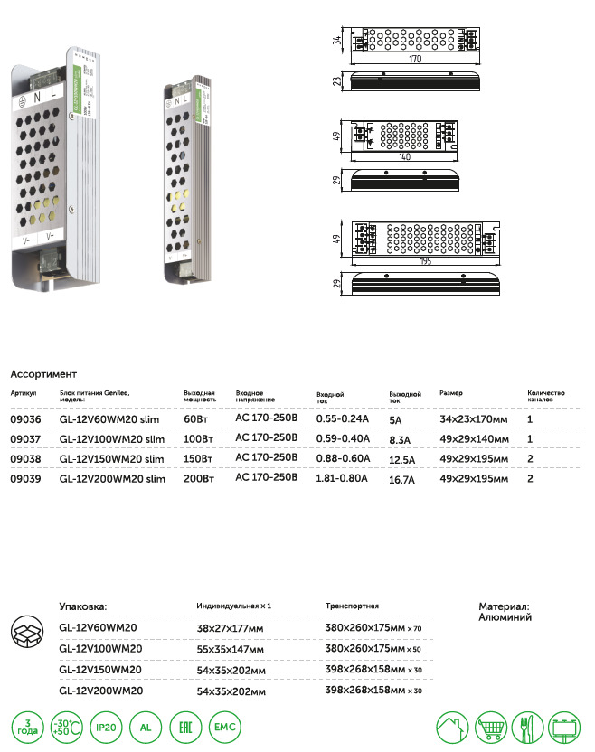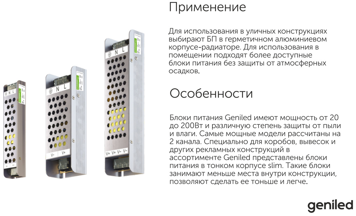 Блок питания для светодиодной ленты Geniled, 12В, 60 Вт, IP20