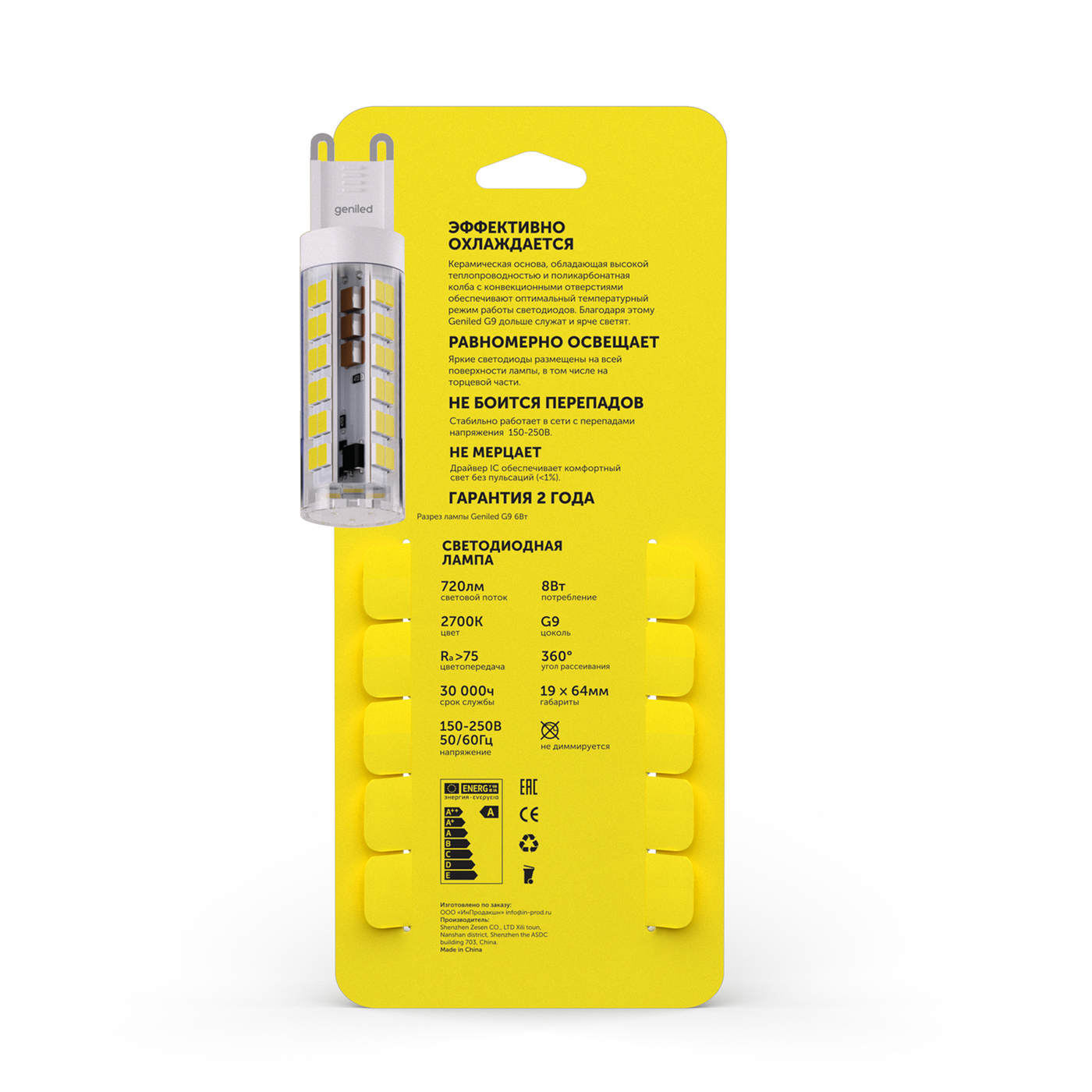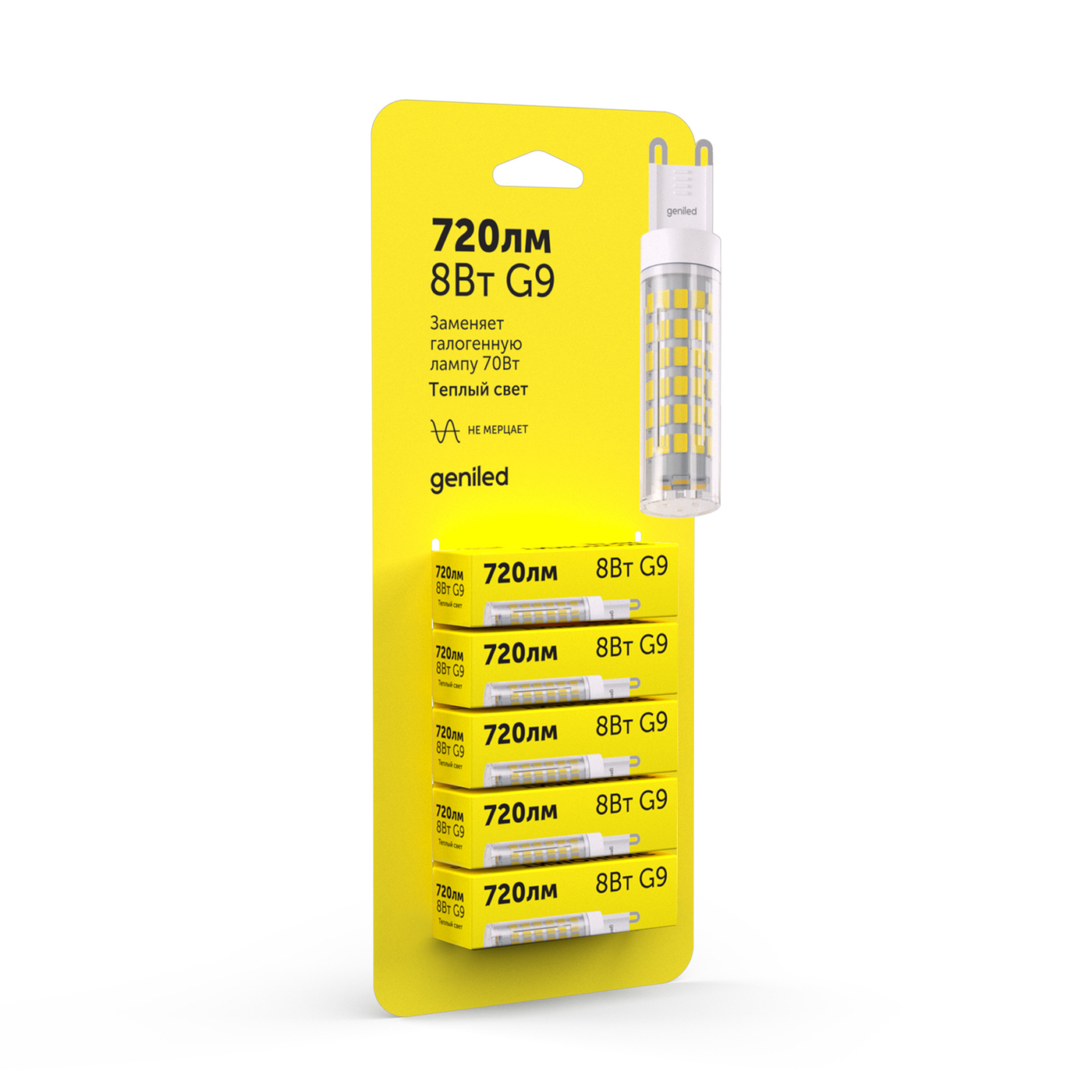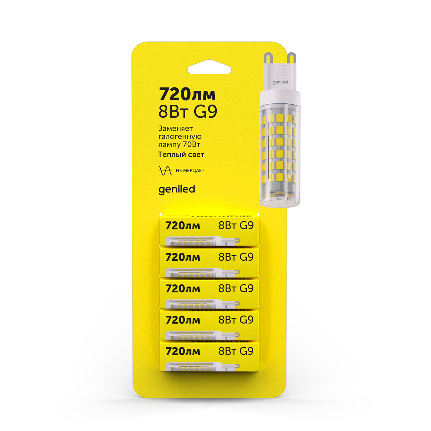 Лампочка Geniled G9, Теплый белый свет, G9, 8 Вт, Светодиодная, 10 шт.