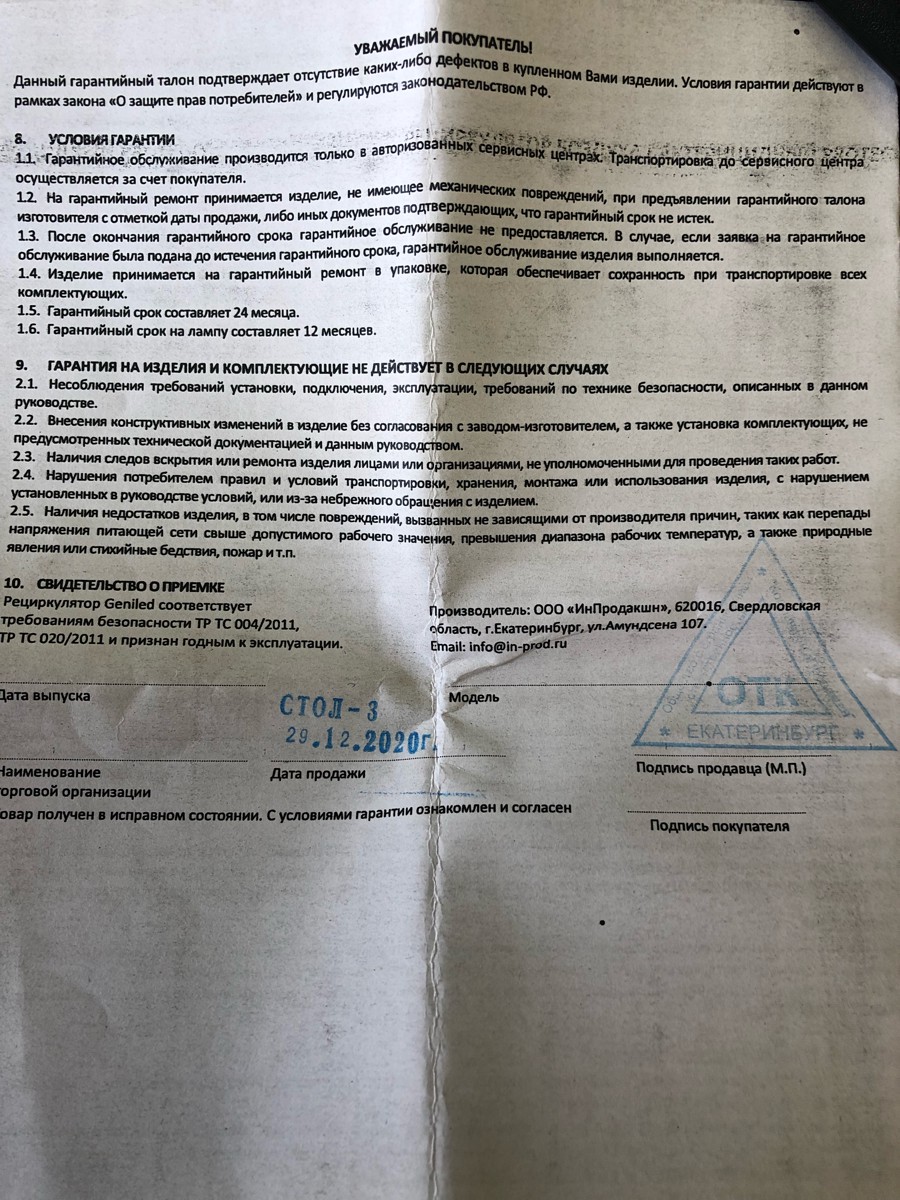 Рециркулятор воздуха бактерицидный Geniled Protego UV115F160