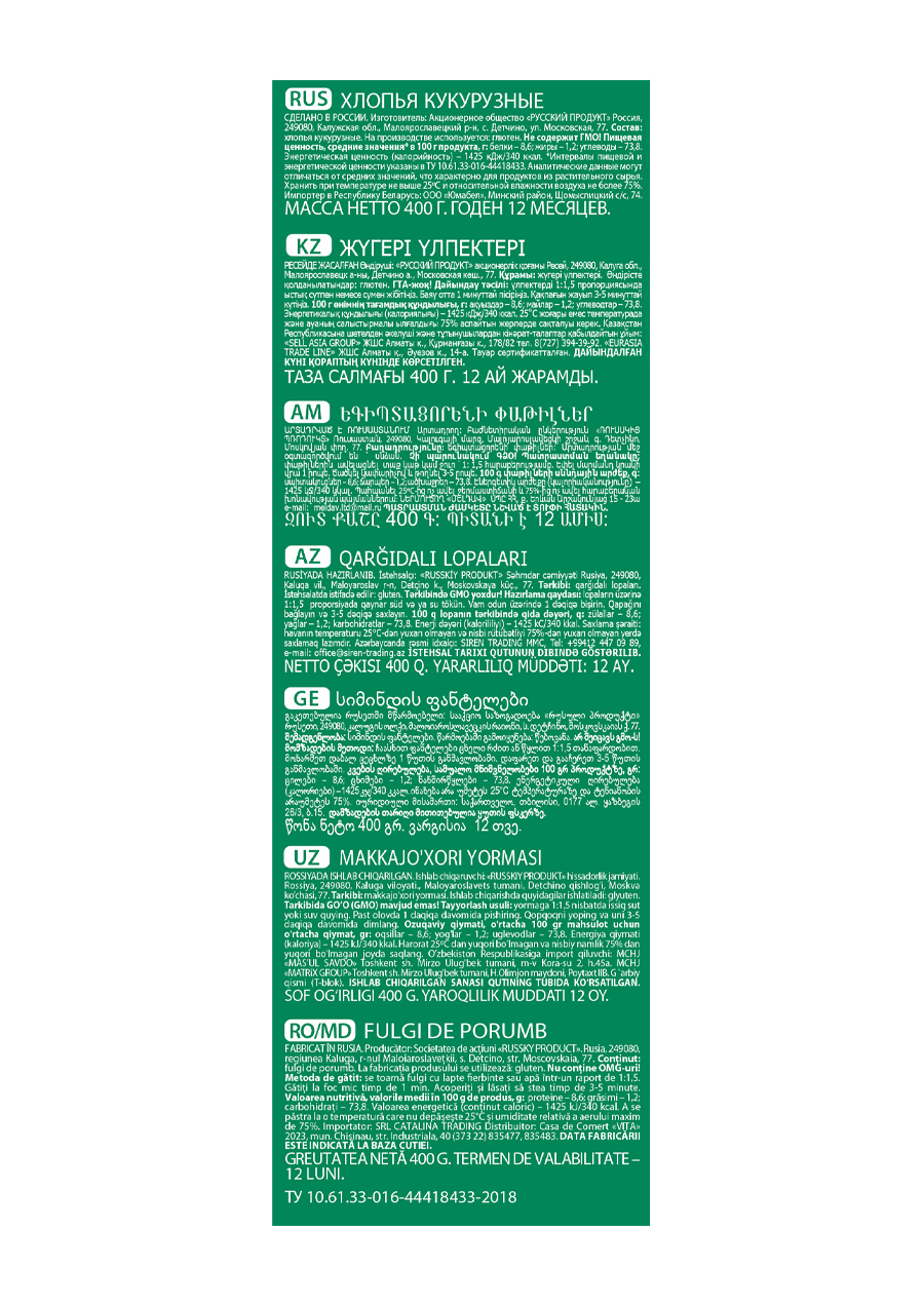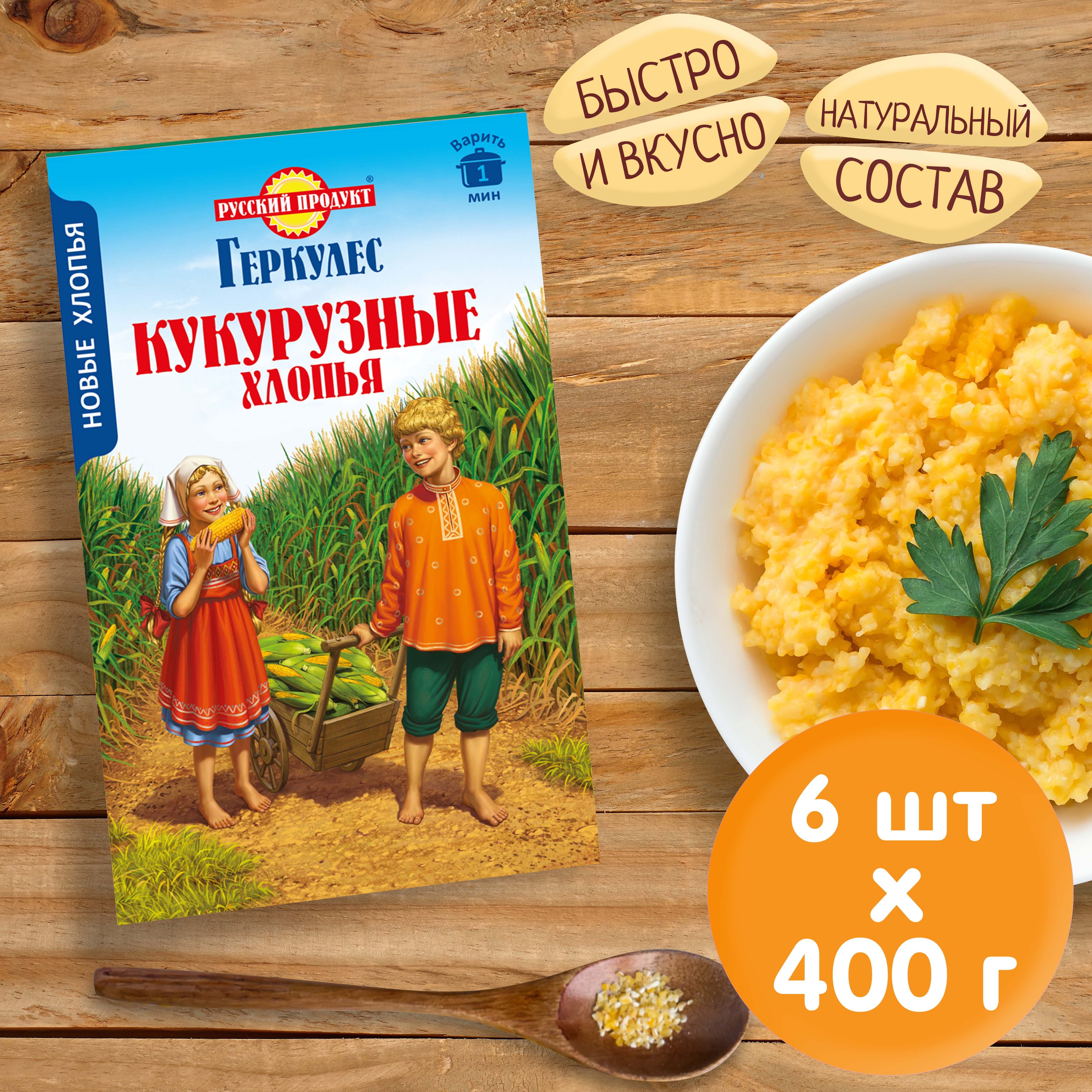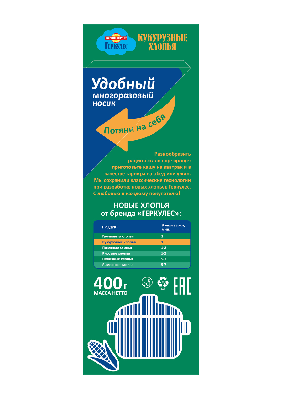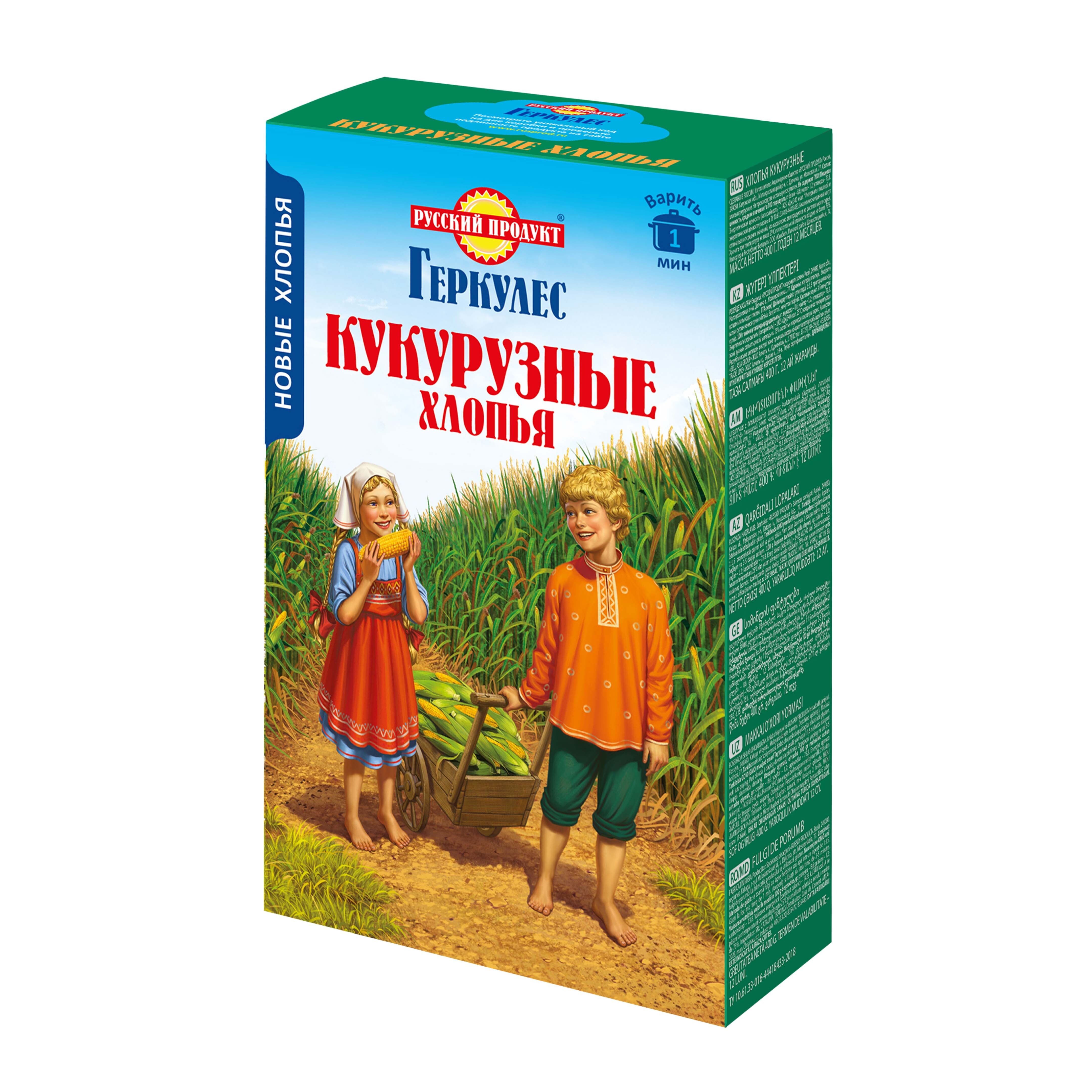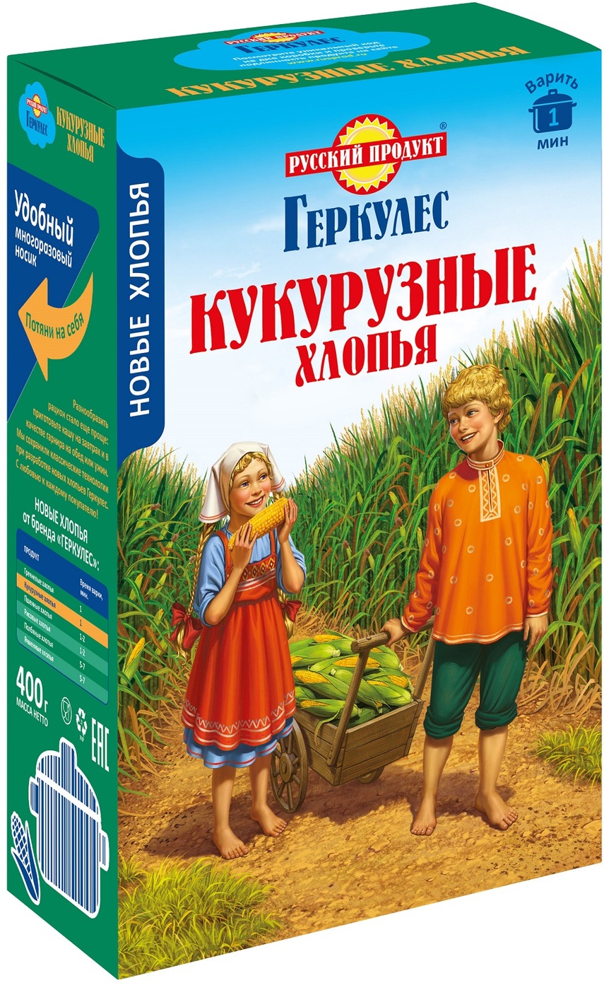 Геркулес Хлопья Кукурузные 400г / 6 шт. в коробке. Русский Продукт. Постный продукт.