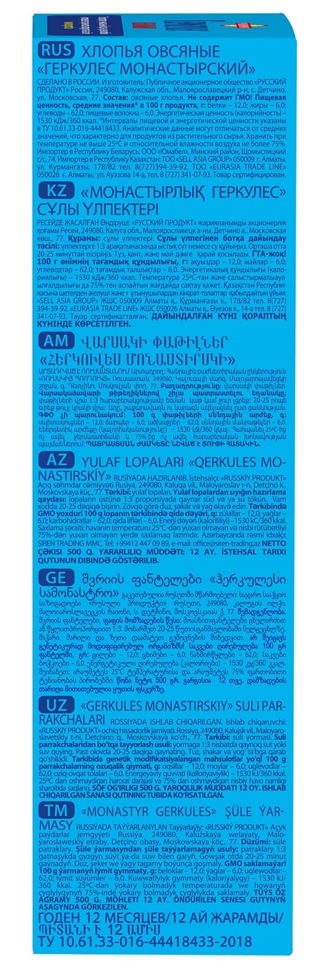 Геркулес Монастырский 500 гр / 7 шт в коробке