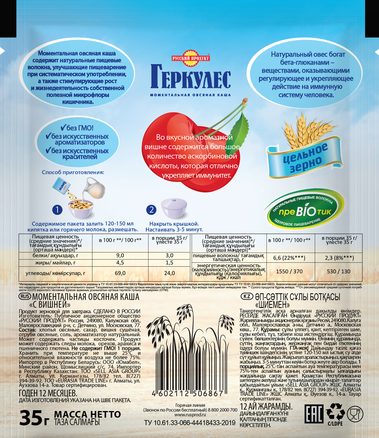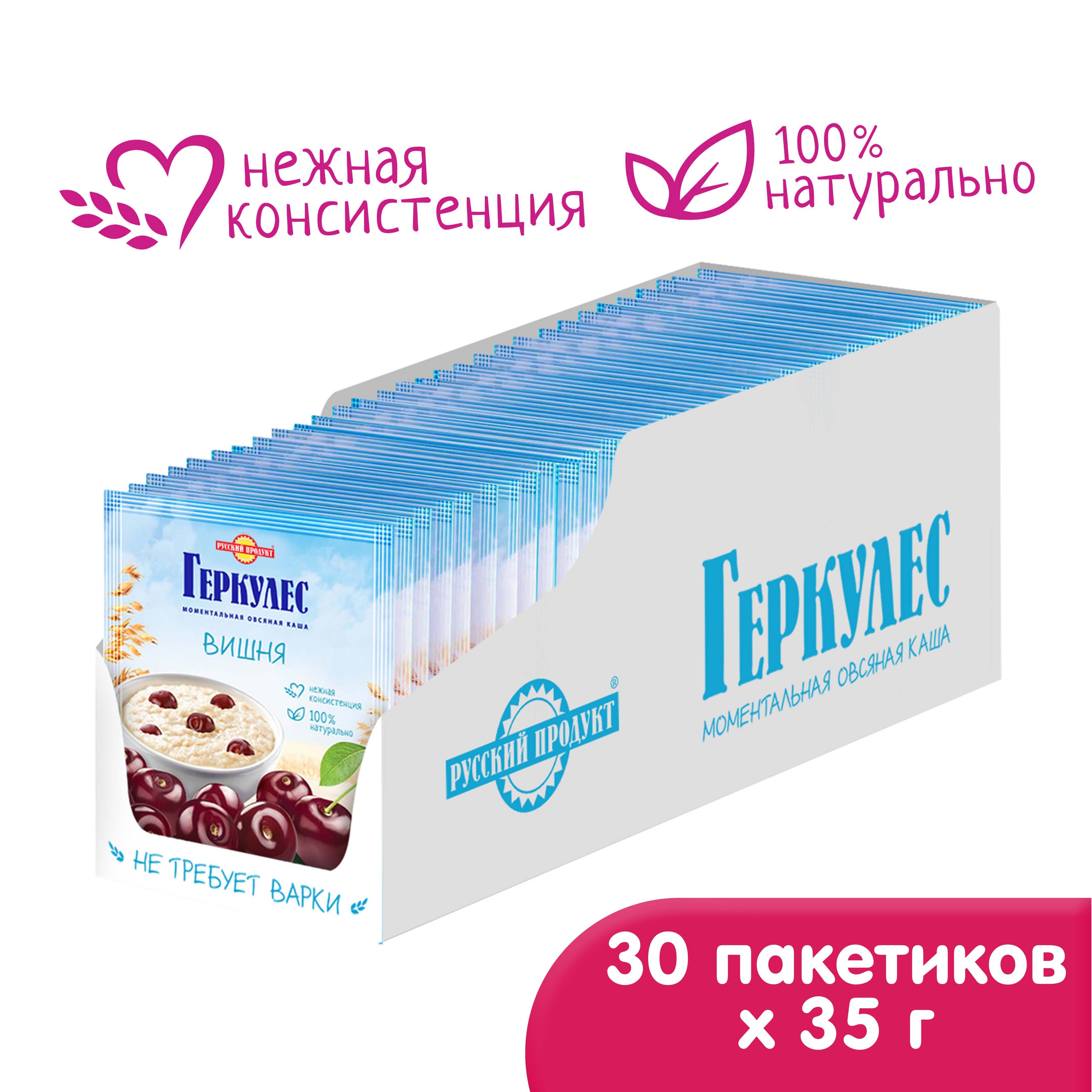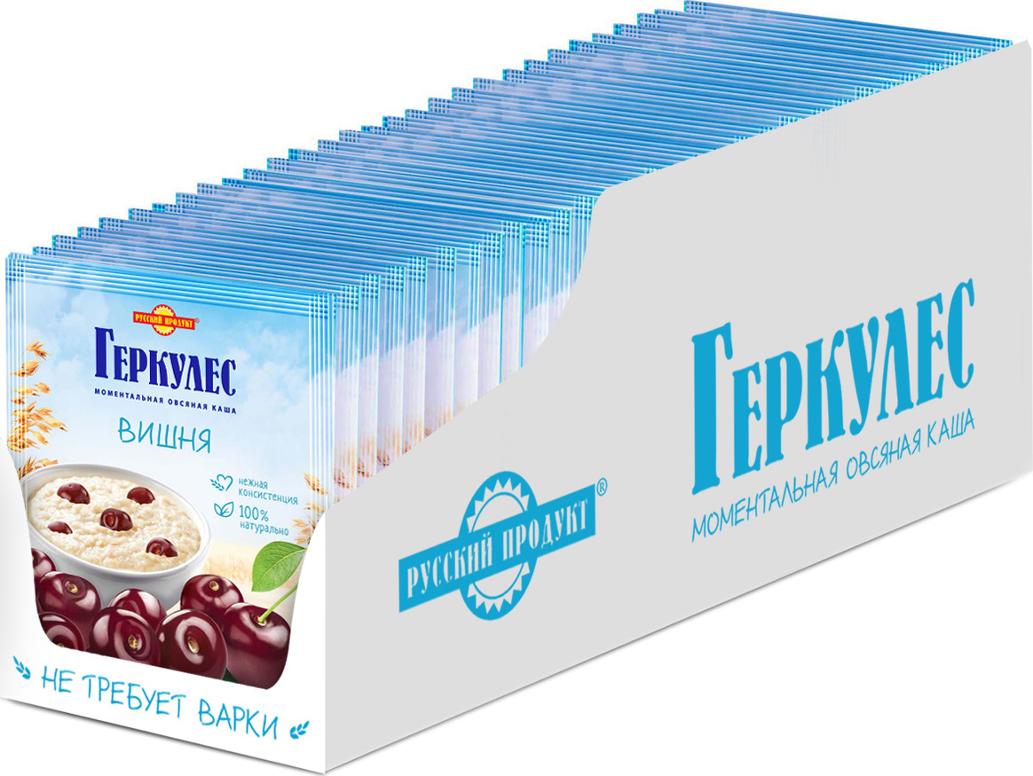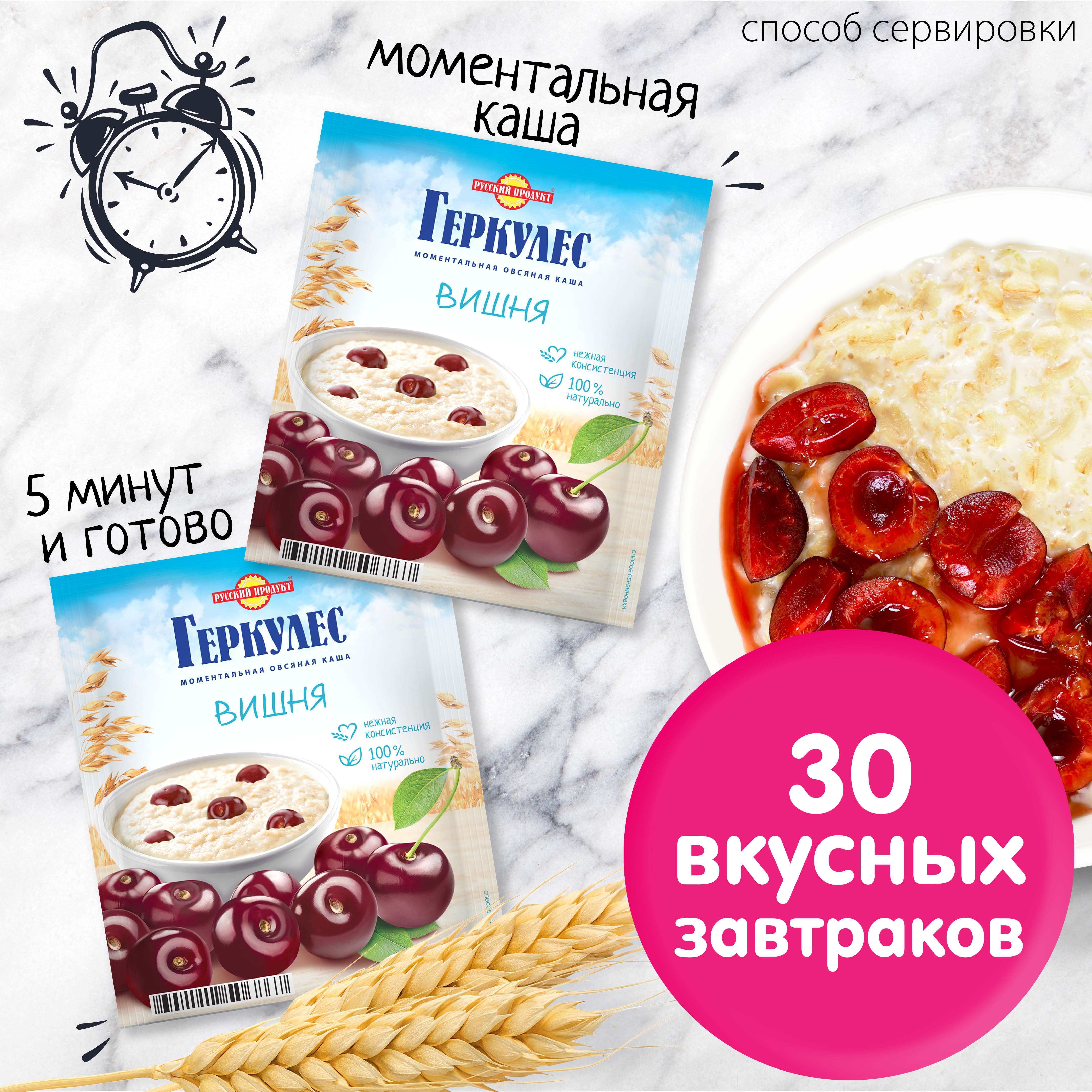 Овсяная каша момент Геркулес с вишней 35г/ 30 шт в упаковке / Каша быстрого приготовления
