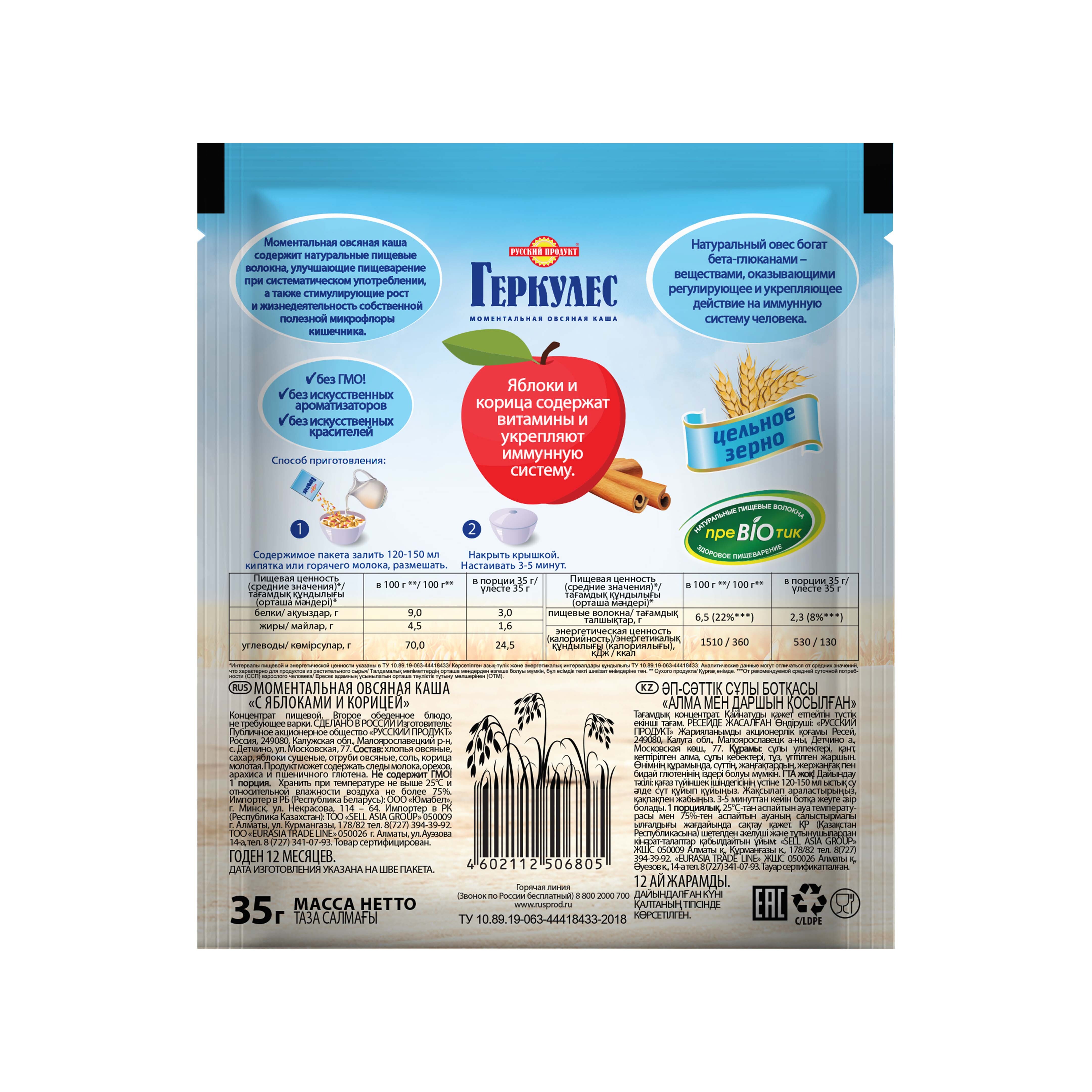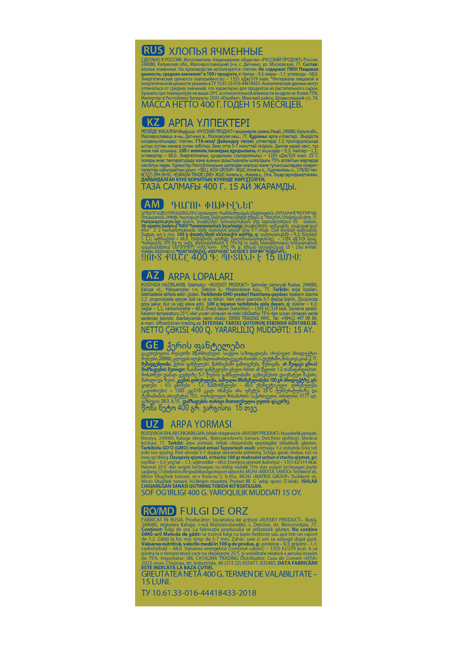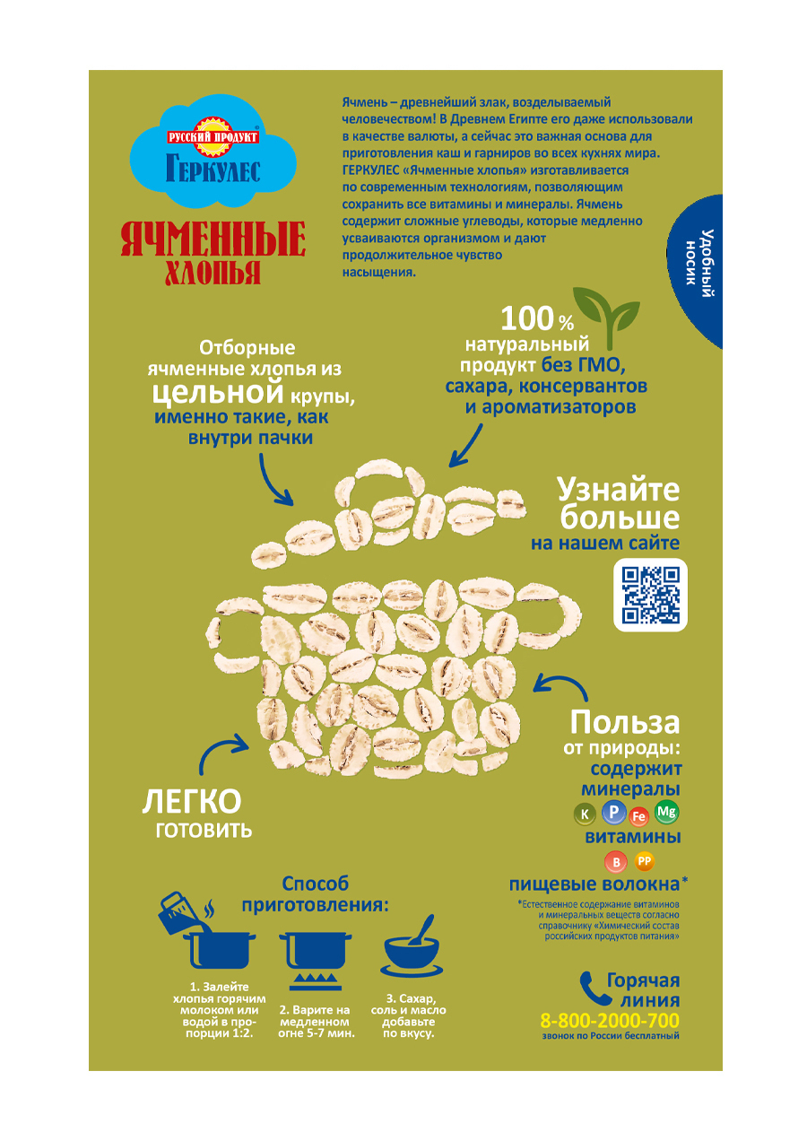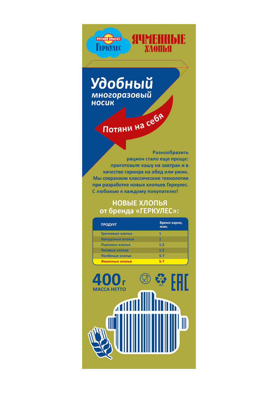 Геркулес Хлопья Ячменные 400г / 6 шт. в коробке. Русский Продукт. Постный продукт
