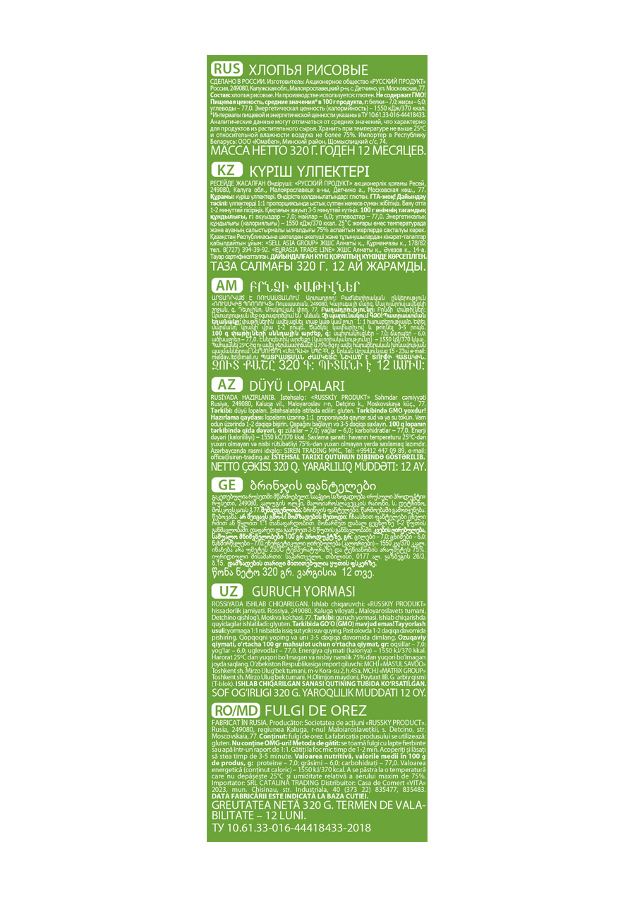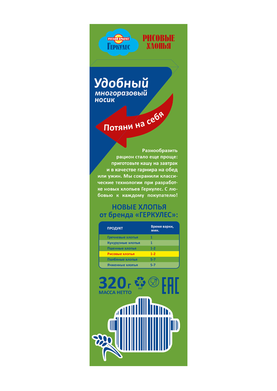 Геркулес Хлопья Рисовые 320г / 7 шт. в коробке