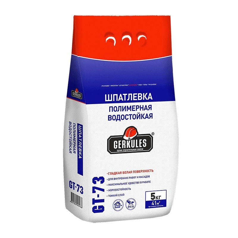 Шпаклевка полимерная водостойкая Gerkules GT-73, белая, 5 кг