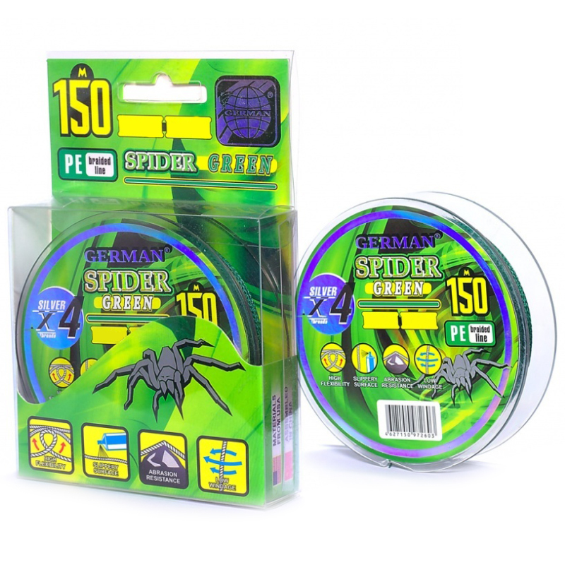 Шнур плетеный German SPIDER Green x4 150 м, 0.16 мм, зелёный, 11.2 кг