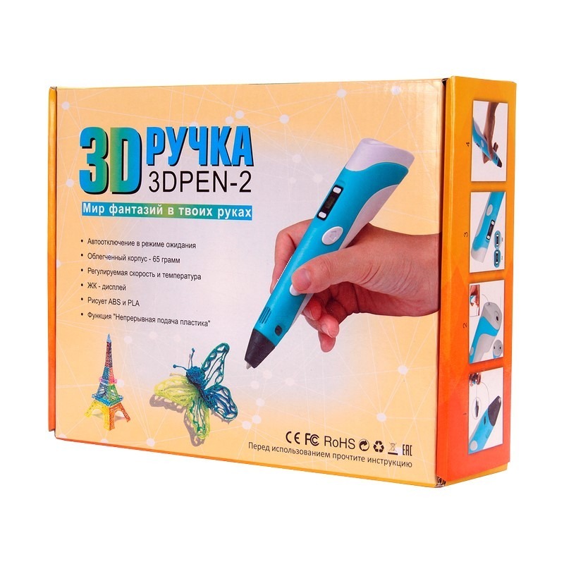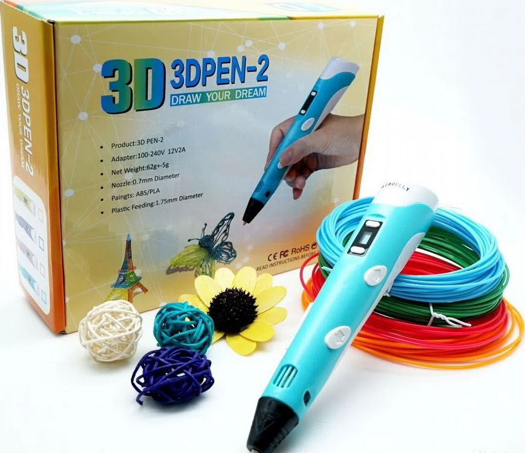 3D ручка 3D PEN-2 PLUS/ голубая с набором прочного ABS 3D пластика/ручка/3D ручка