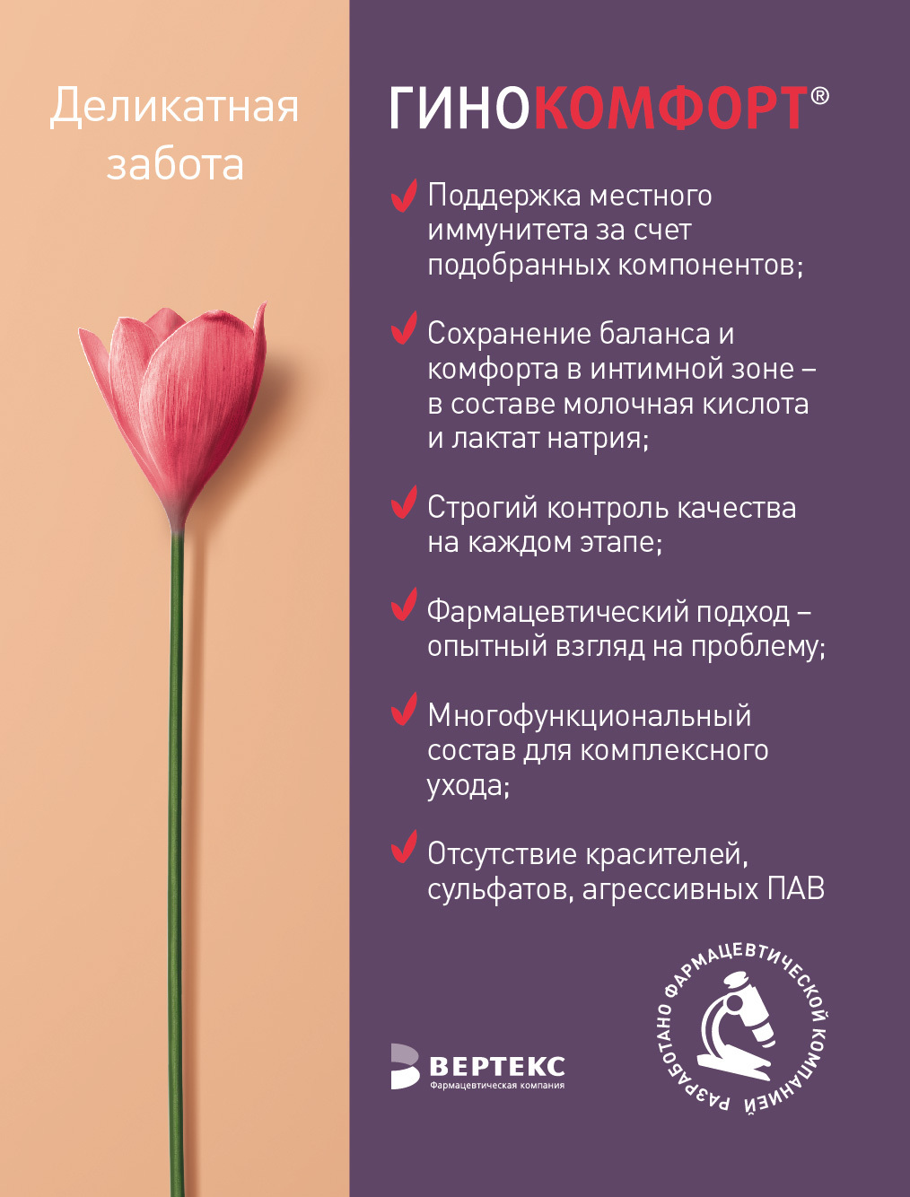 Успокаивающий гель ГИНОКОМФОРТ для интимной гигиены с молочной кислотой для женщин, 200 мл.