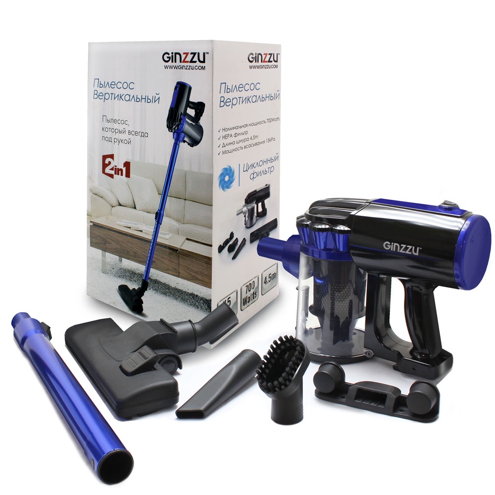 Вертикальный пылесос Ginzzu VS117, синий, черный