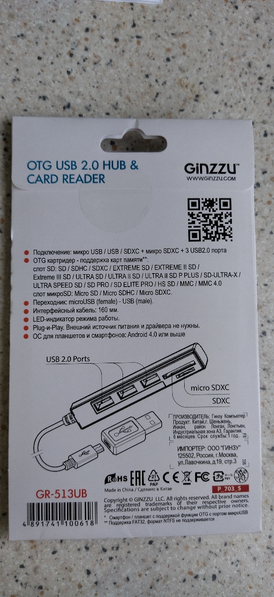 Кабель USB 2.0-micro USB 1м 2А дата-кабель Ginzzu GC-409B черный