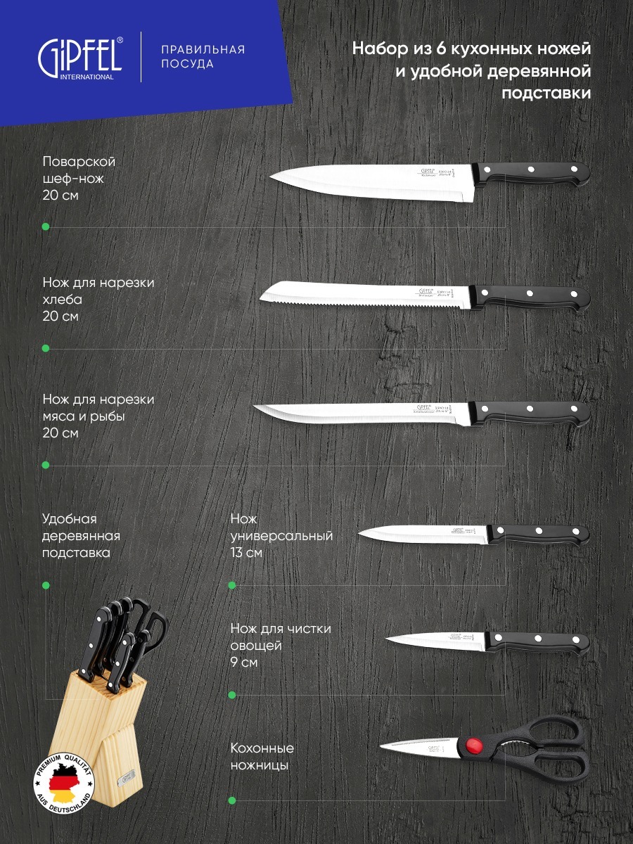 Набор кухонных ножей Gipfel "Tradition" из 7 предметов