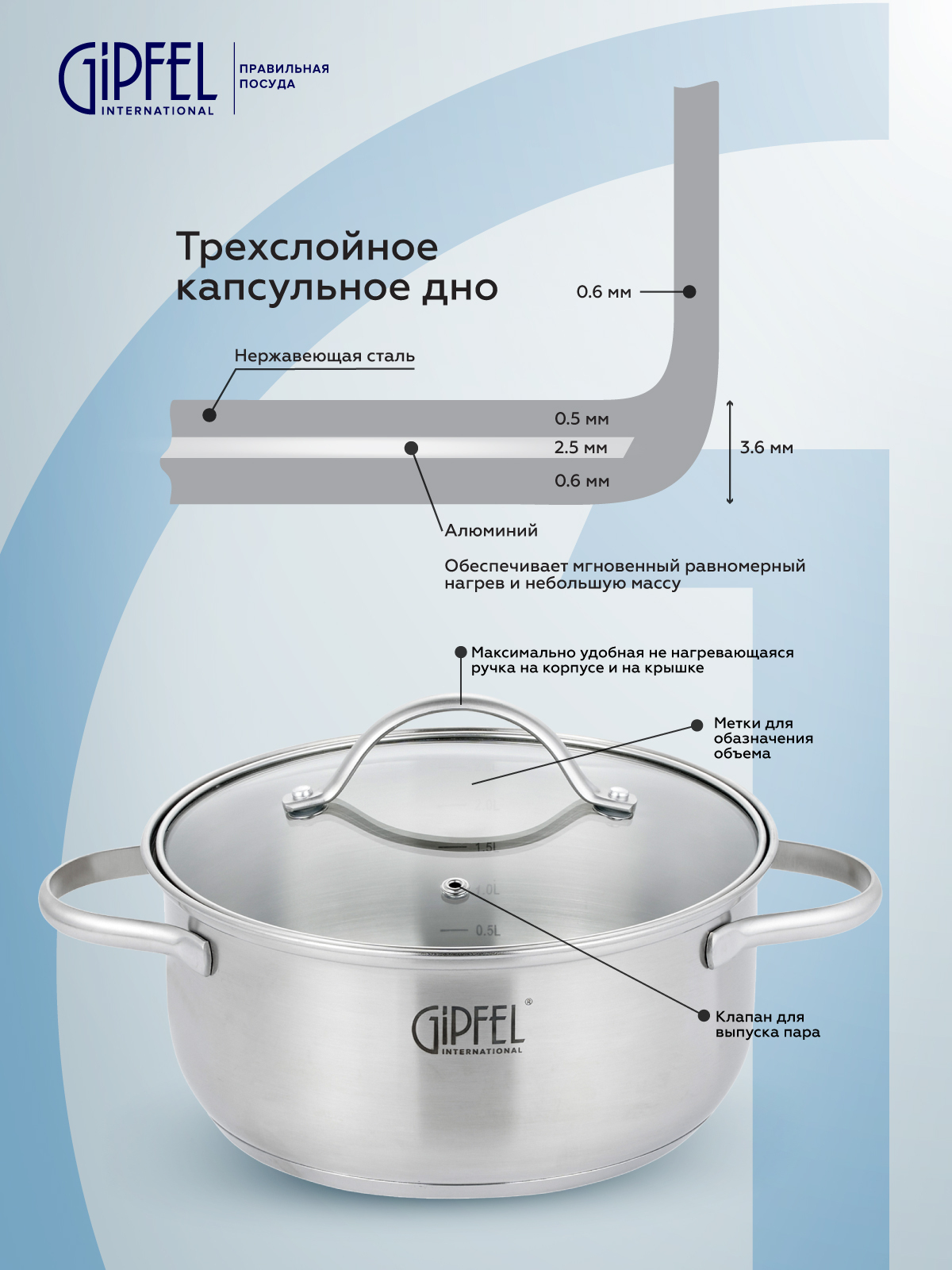 Кастрюля Gipfel, Нержавеющая сталь