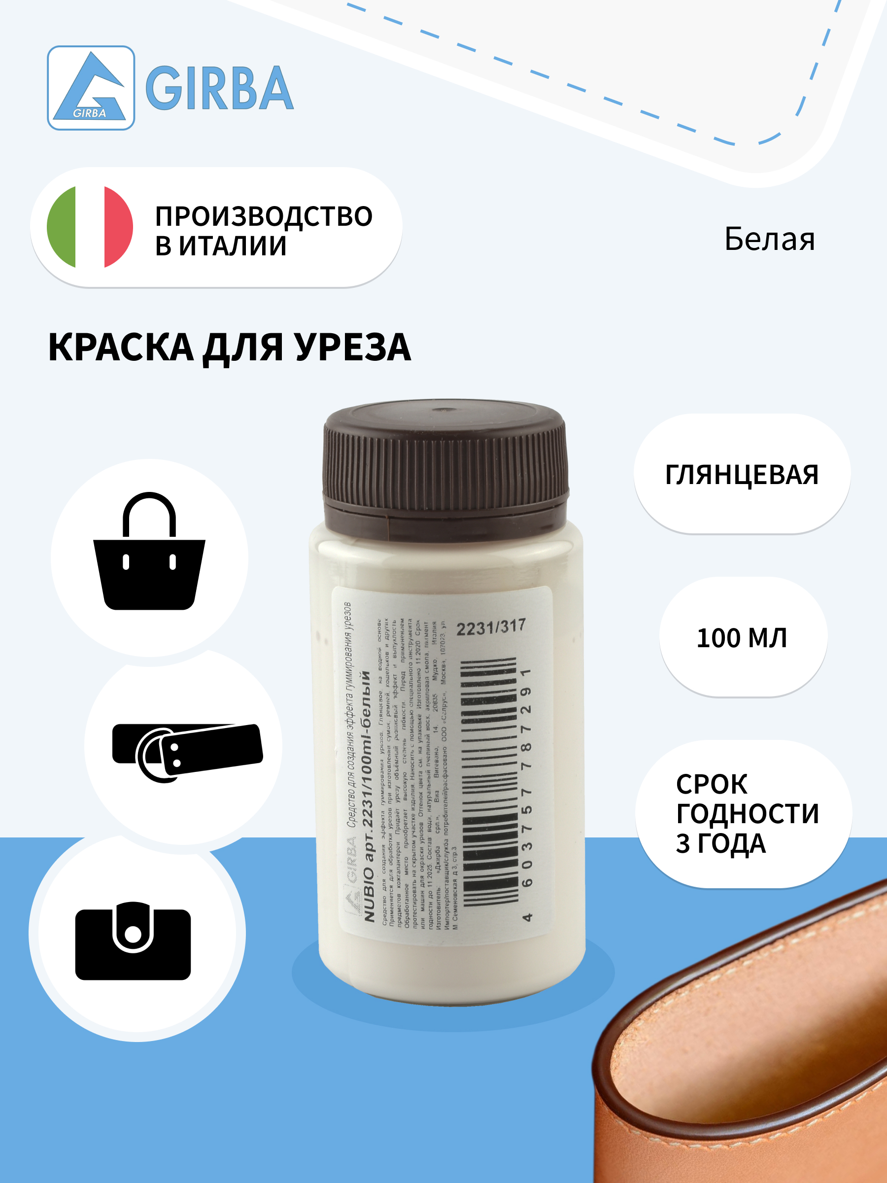 GIRBA - 317 Средство для создания эффекта гуммирования урезов сумок, ремней. кожгалантереи, NUBIO, глянц., флакон, 100мл. (белый)