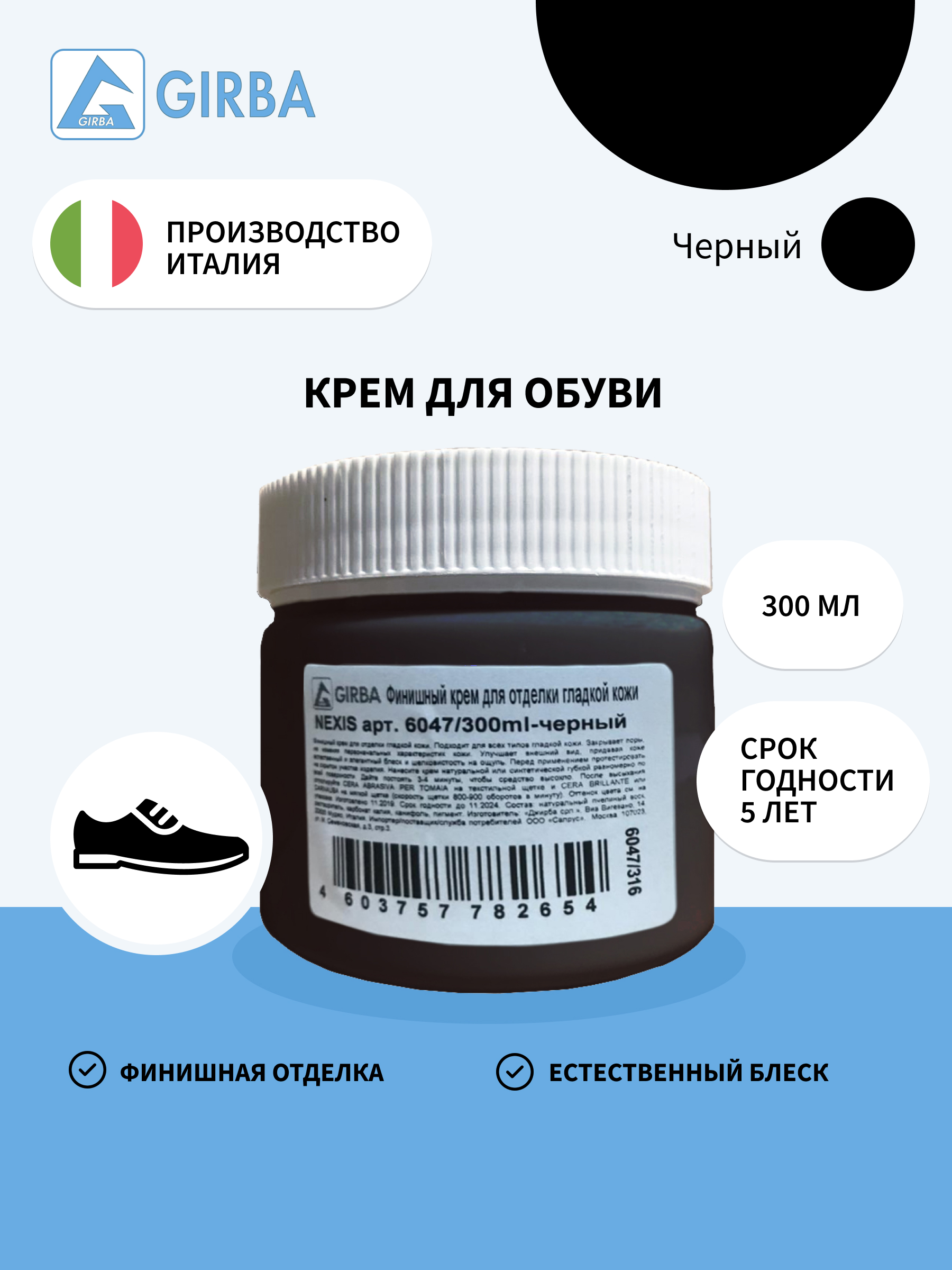 Крем для обуви, финишный крем для отделки гладкой кожи, естественный блеск, NEXIS, GIRBA - 316 (черный), флакон, 300мл.