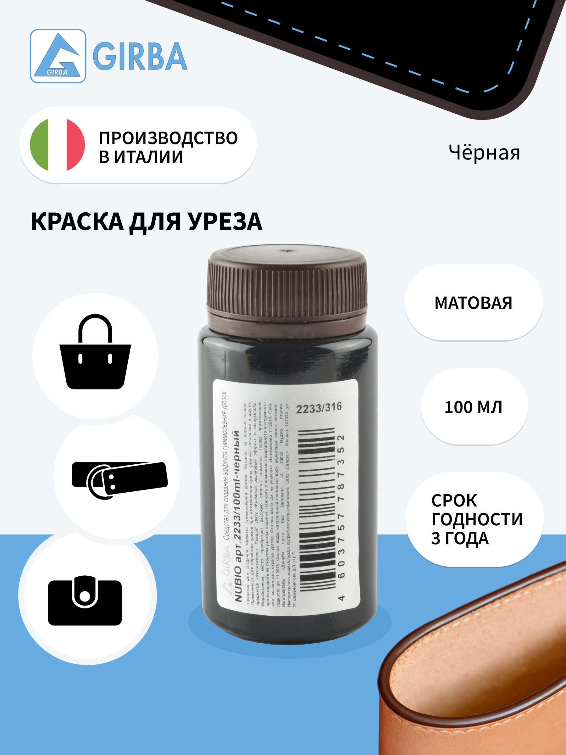 GIRBA - 316 Средство для создания эффекта гуммирования урезов на сумках, ремнях, кожгалантерее, NUBIO, матовый, флакон, 100мл. (черный)