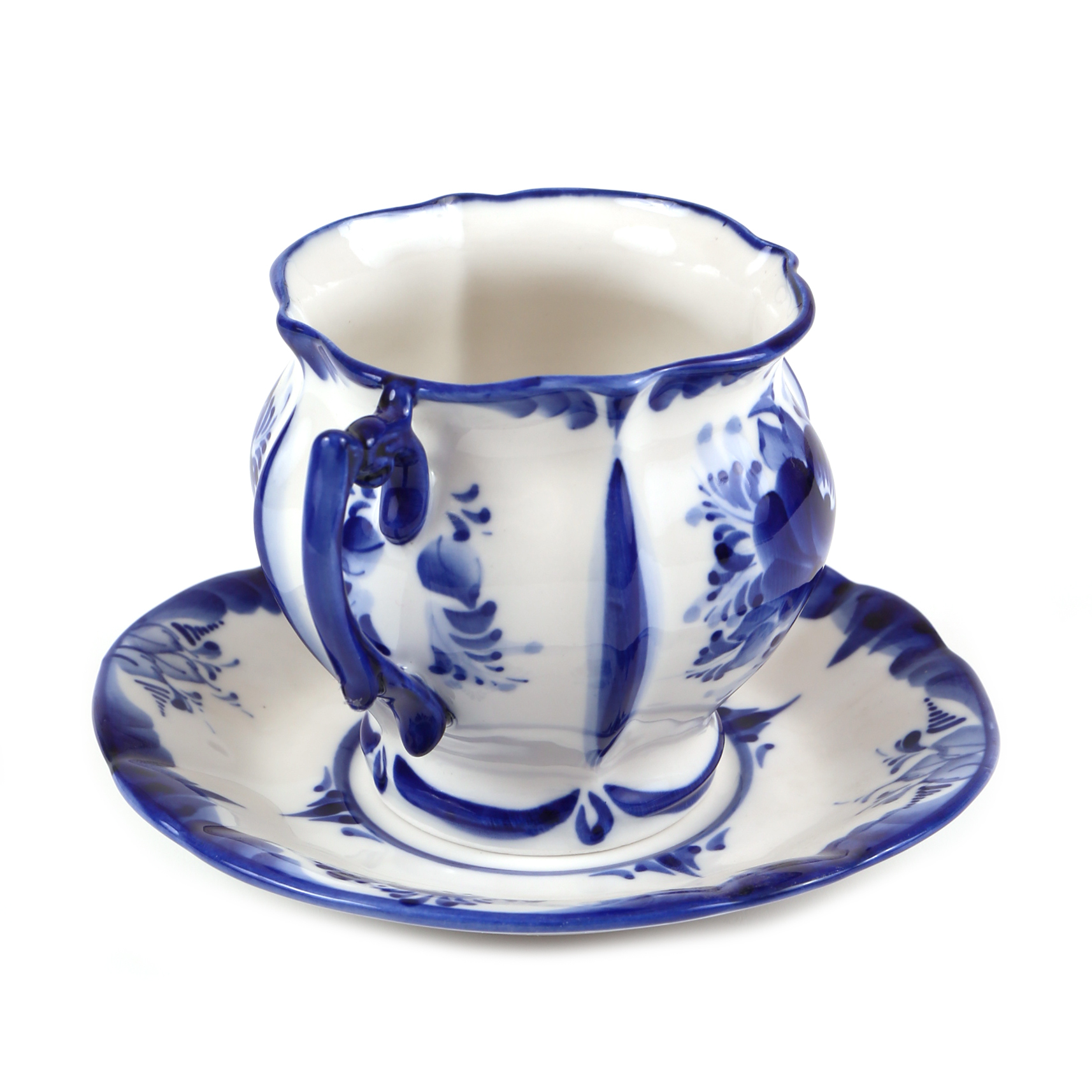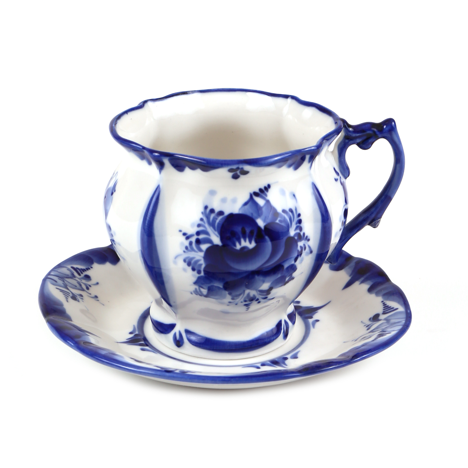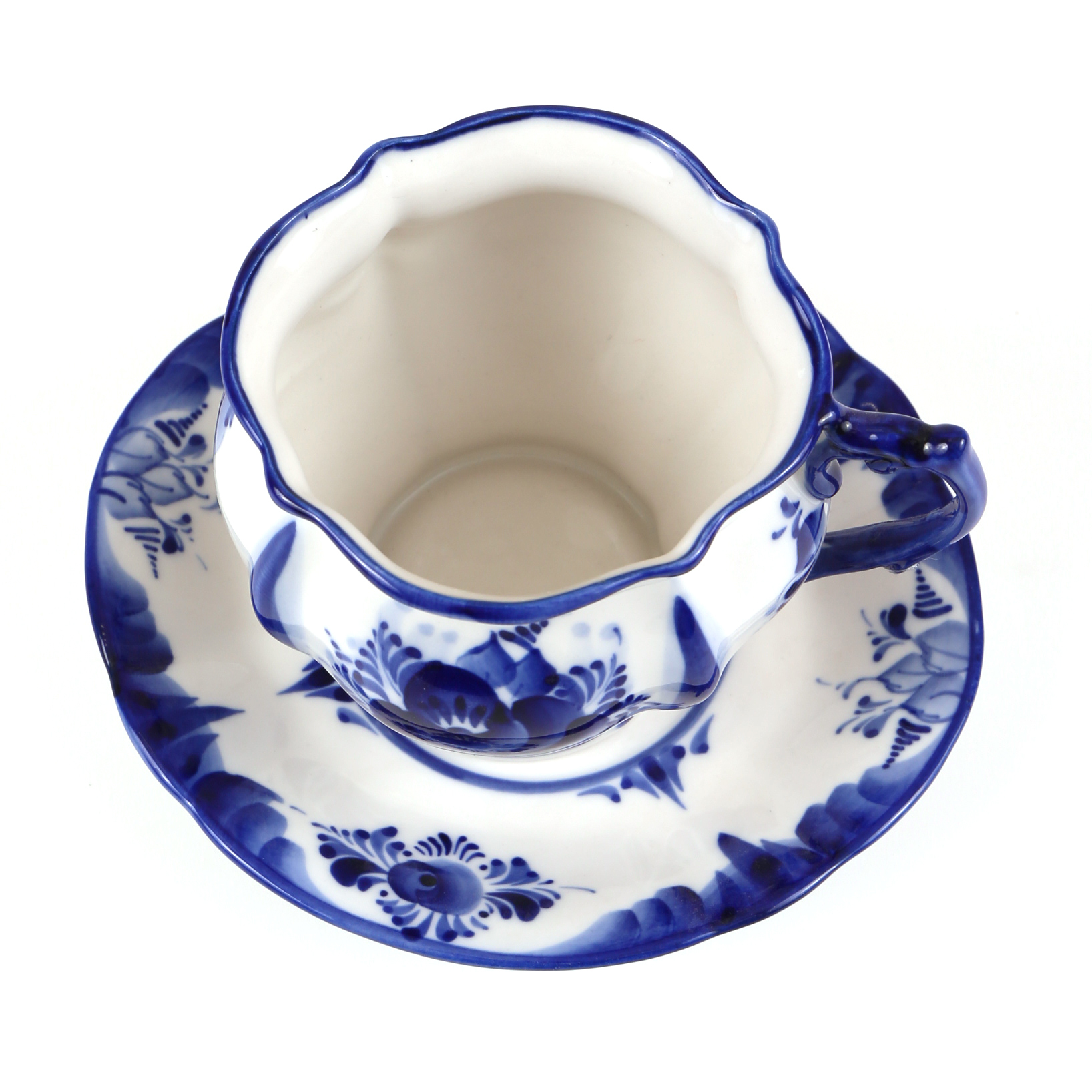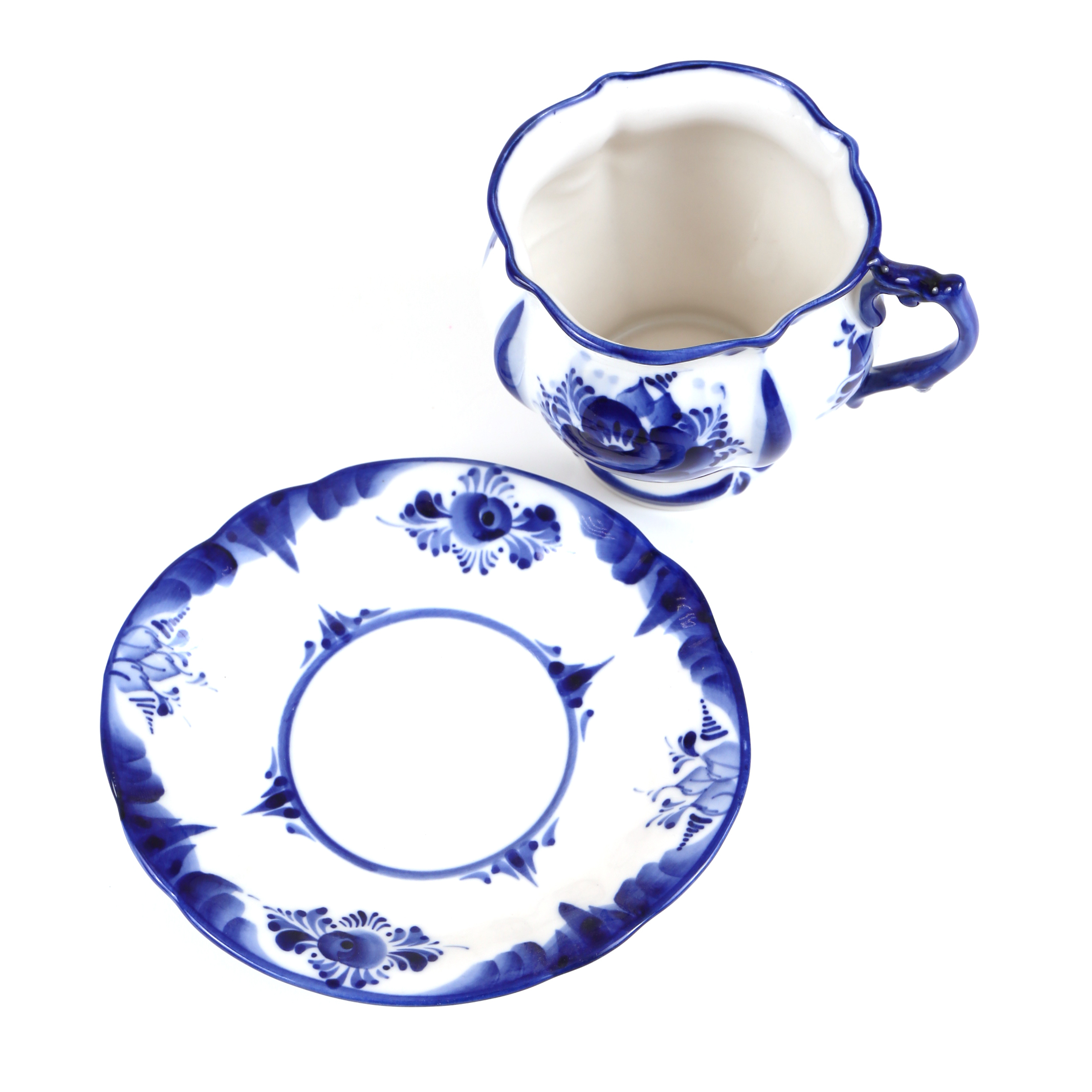 Чайная пара Гжель. Фарфор / Ручная работа / С авторской росписью