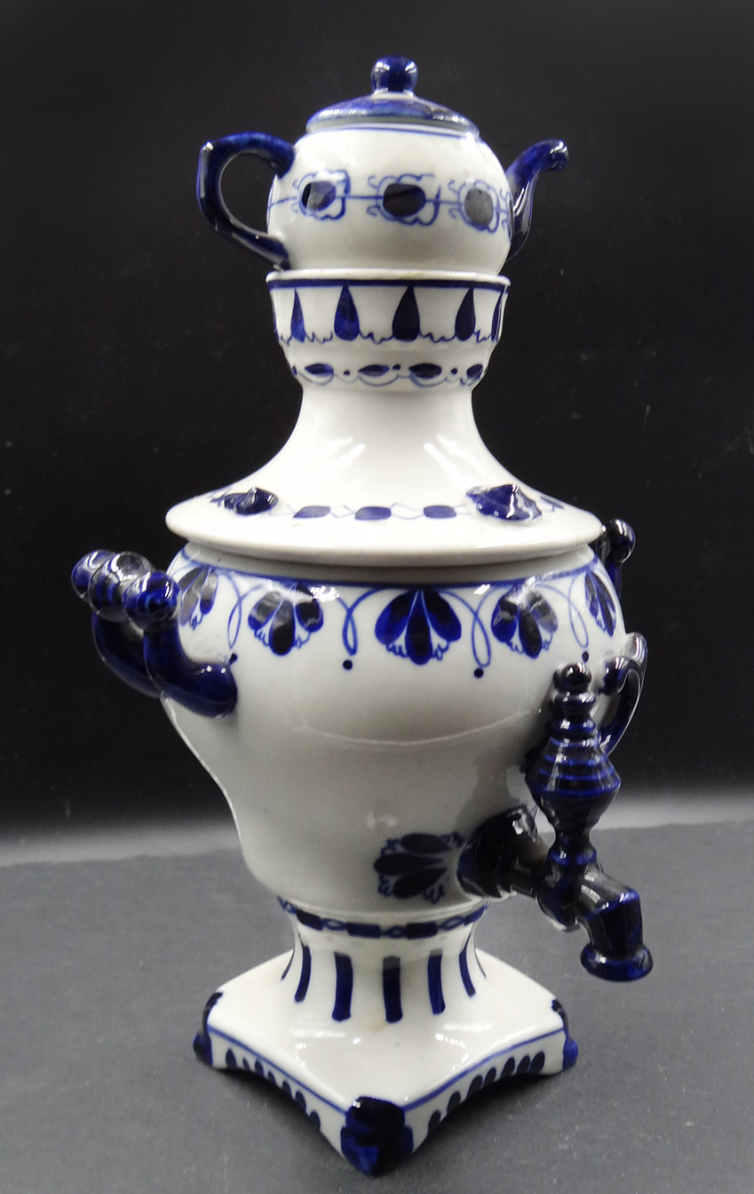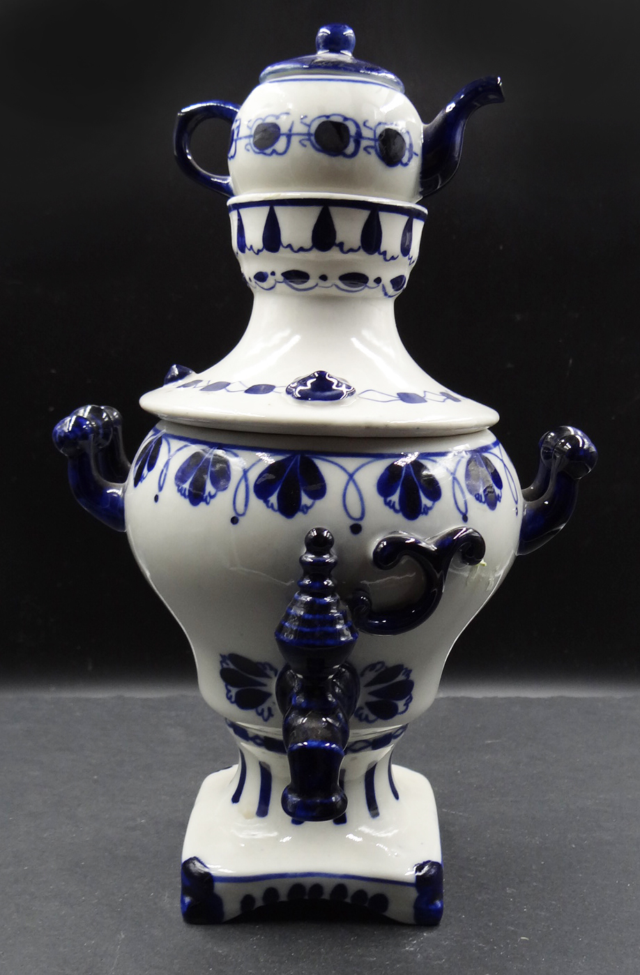 Статуэтка - шкатулка "Самовар. Большой". Фарфор, Гжель. СССР. 1980-1990