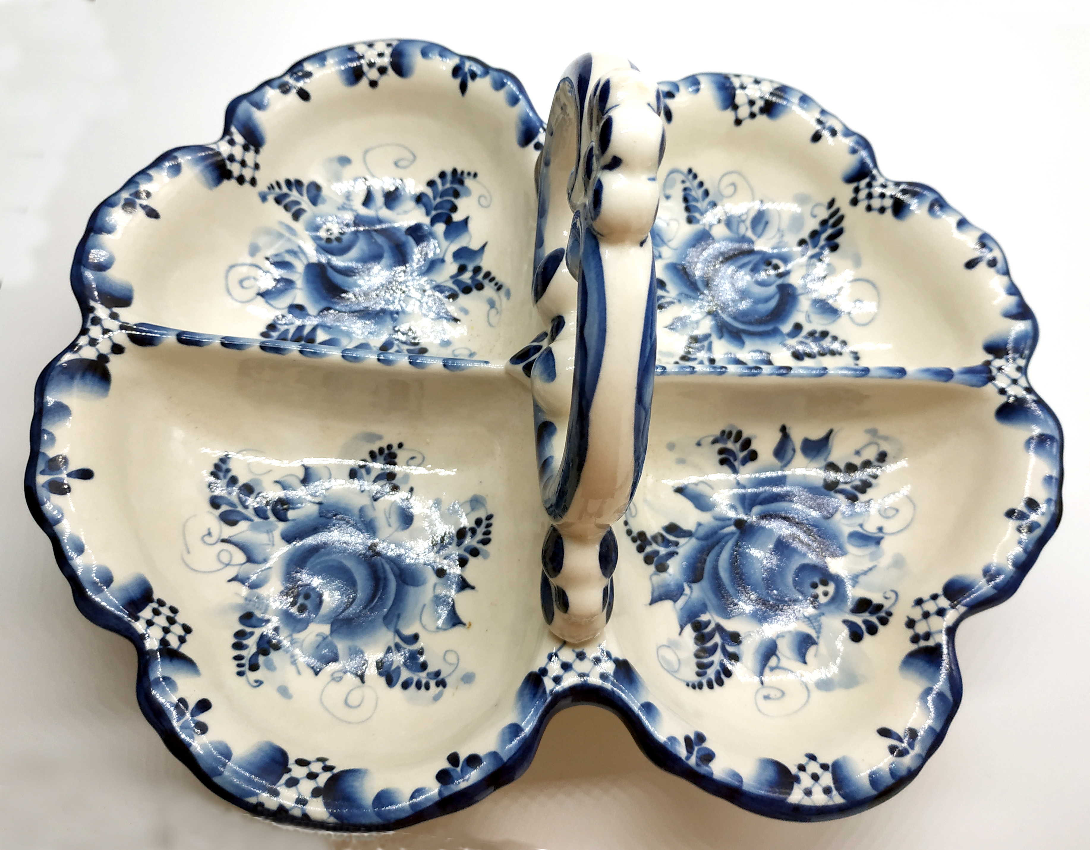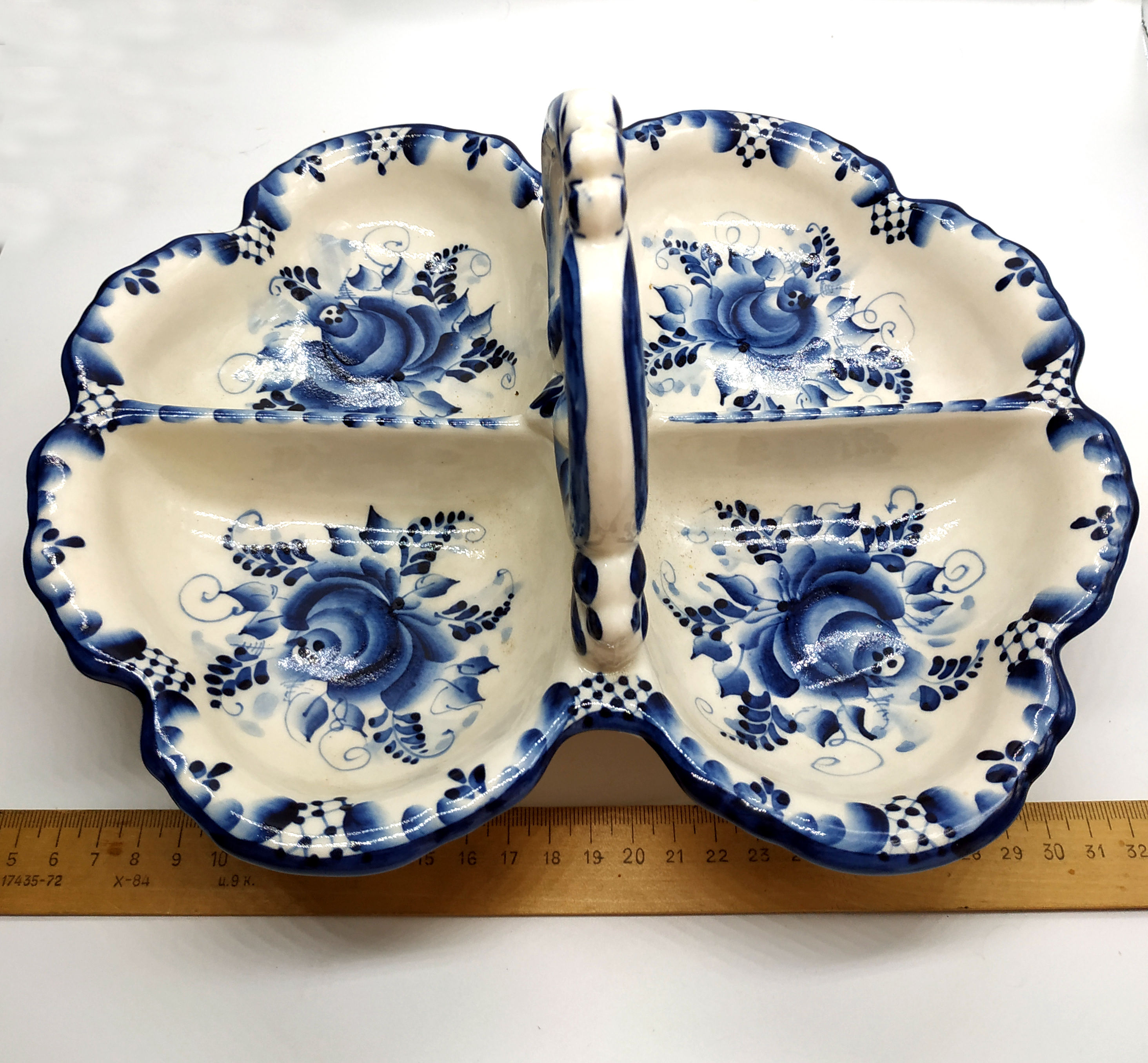 Менажница Гжель, авторская работа с подписью автора (Исп. Тамбовская) 60-е годы
